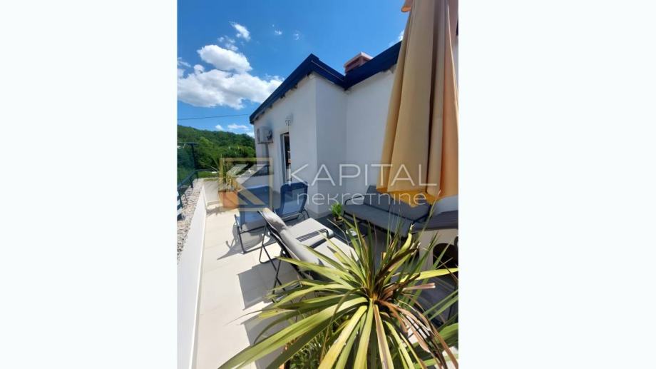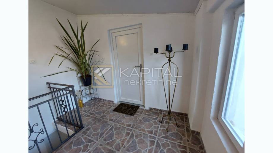 Kastav kuća s poslovnim prostorom Kuća uz prometnicu s velikim poslovnim prostorom i uhodanim obrtom. U prizemlju je poslovni prostor od 90 m2 s dva sanitarna čvora.Na polukatu je garsonjera s kupaonicom (20 m2). Na katu je 2s+db, velika kuhinja s blagavaonom. Na polukatu mali stan: soba, kupaonica i kuhinja s blagovonicom.