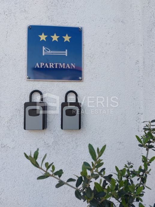 Na prvom katu nalazi se stan od cca 70 m2 koji se sastoji od dvije spavaće sobe, dnevnog boravka, kuhinje i kupaonice.