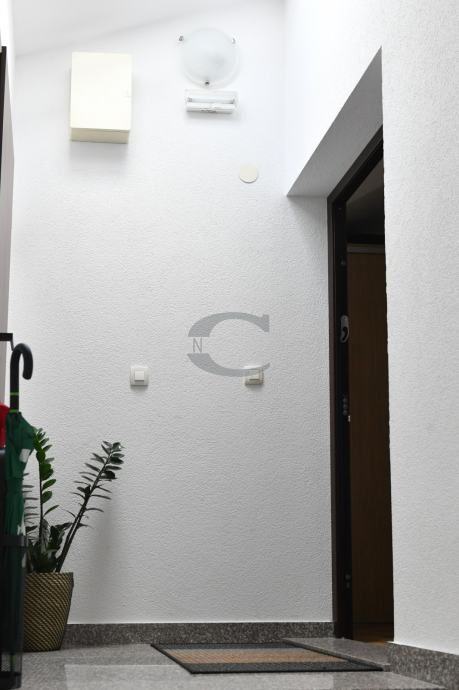 Okućnica je prostrana a ograđeni vrt od 70m2 koji pripada stanu uređen je biljem i drvećem te je idealan mir i opuštanje.