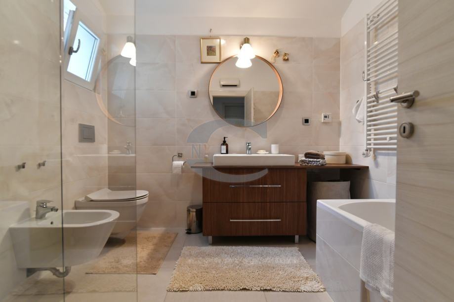 tri spavaće sobe, kupaonice walk-in tuš kabinom, toaleta te stanu također pripada i tavan.