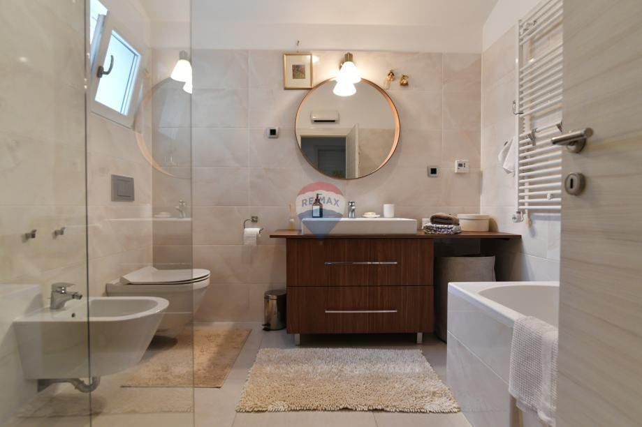Stan raspolaže s tri udobne spavaće sobe, prostranom kupaonicom opremljenom walk-in tušem, kadom i bideom, dodatnim gostinjskim WC-om s prostorom za perilicu i sušilicu rublja te manjim balkonom diskretno namijenjenim praktičnoj upotrebi. Funkcionalnost prostora dodatno upotpunjuju izba i tavanski prostor, koji omogućuju urednost i optimalno korištenje stambene površine.