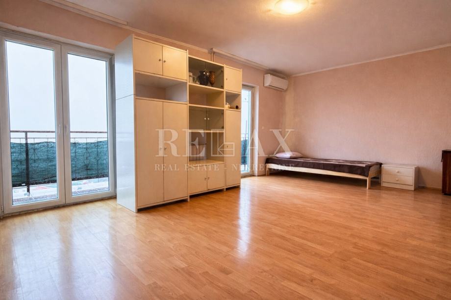 Stan se sastoji od predsoblja, ulaznog hodnika, kuhinje povezane s blagovaonicom, dnevnog boravka s izlazom na veliki balkon koji se proteže duž cijele južne strane stana, dvije spavaće sobe – od kojih jedna također ima izlaz na balkon s prekrasnim pogledom – te kupaonice. Prostorije su funkcionalno raspoređene, a dnevna zona obiluje prirodnom svjetlošću zahvaljujući velikim staklenim površinama.