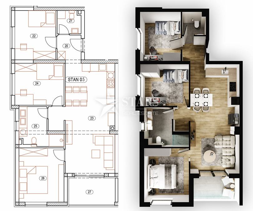 Predstavljamo prostran i moderno osmišljen stan S5 u novogradnji, koji nudi savršen balans prirodnog okruženja i blizine gradskih sadržaja.