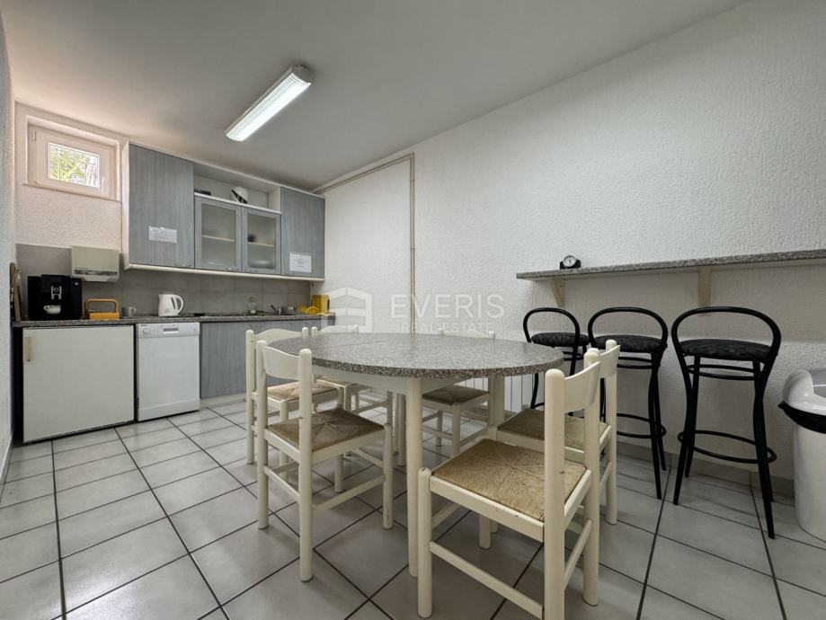 Kompletno je opremljen uredskim namještajem. Pogodan je za ured ili tihu djelatnost.