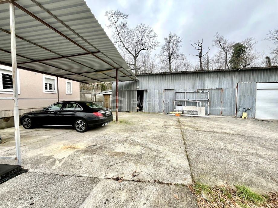 Okućnica od 1513 m2 nudi prostrano dvorište koje je brižno njegovano, zajedno s garažom za dva automobila, natkrivenim parkingom i dodatnim mobilnim skladišnim prostorom od oko 150m2.