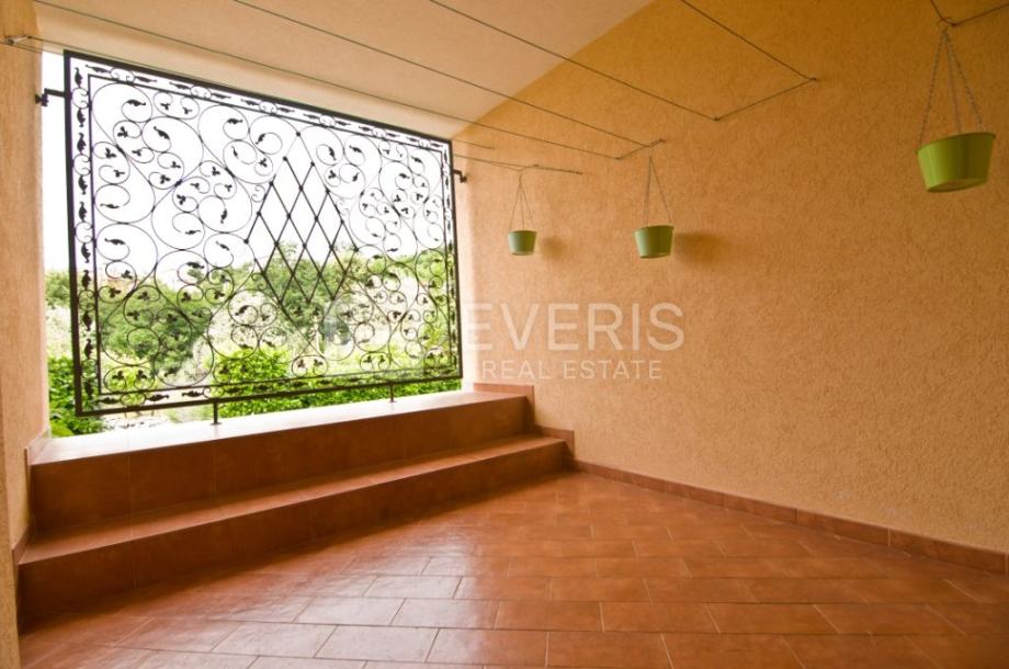 Prizemlje ukupne površine 175,30 m2 se sastoji od hodnika, više spremišta, stubišta, izba, trijema, toaleta, kuhinje s dnevnim boravkom iz kojeg se izlazi na predivnu terasu, kupaonice, vešeraja i garderobnog ormara. U sklopu terase nalazi se ljetna kuhinja s roštiljem, a pored glavnog ulaza nalazi se garaža.