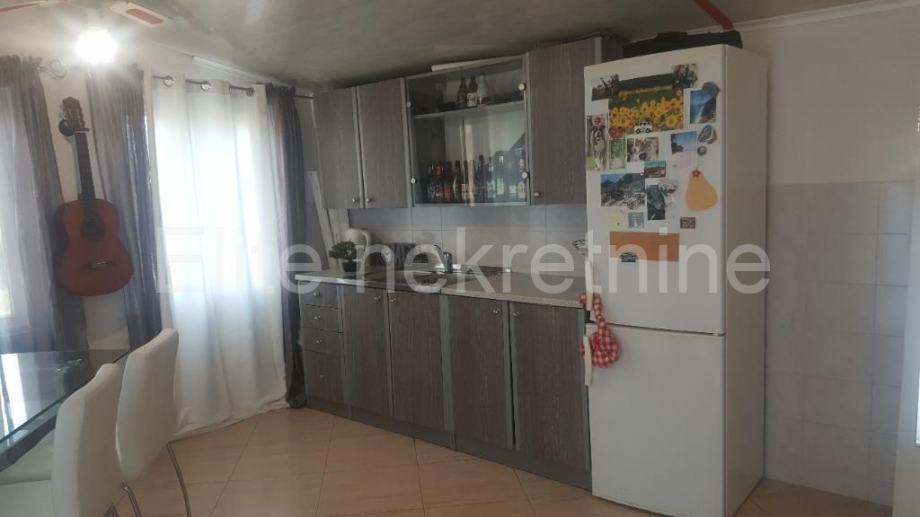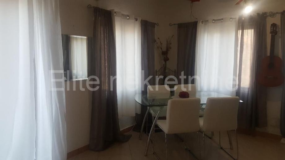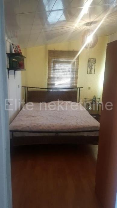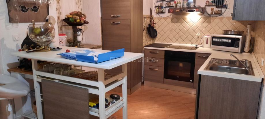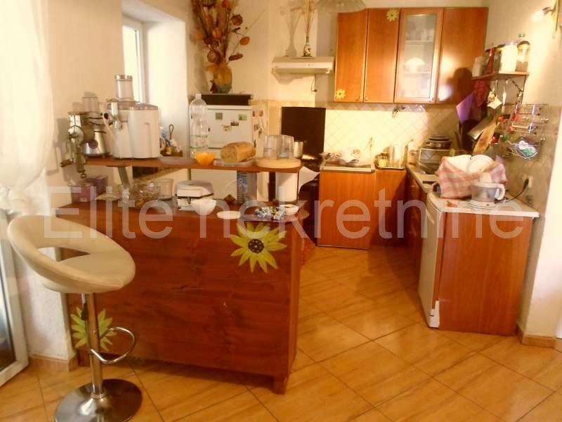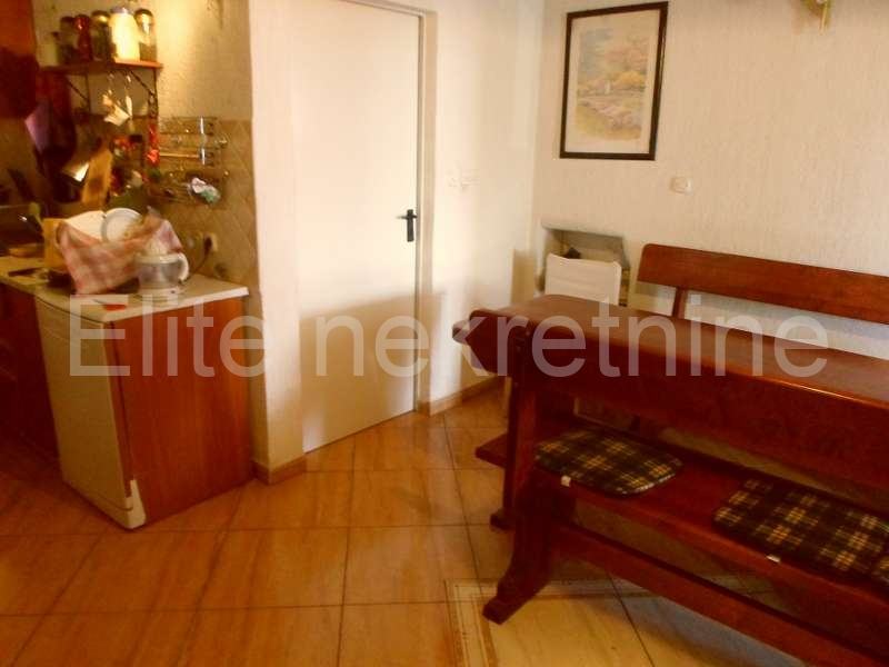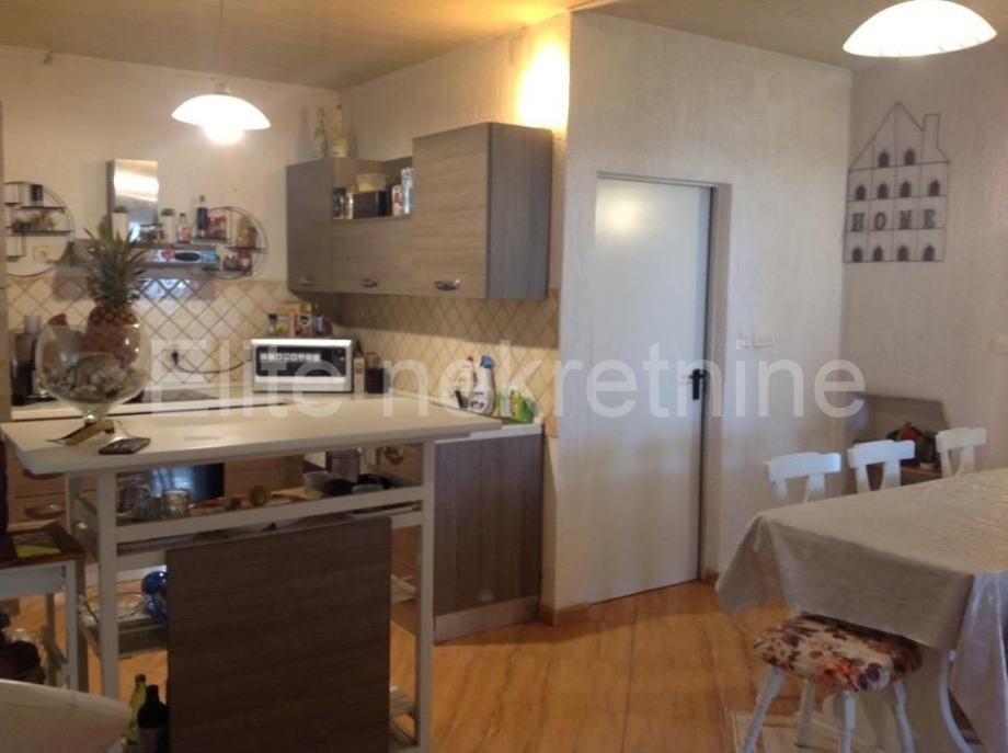 Na prvom katu smjestio se komforni dvosobni stan, nedavno preuređen, veličine 100 m2. Sastoji se od dvije spavaće sobe, prostranog dnevnog boravka, kuhinje s blagavaonom i kupaone.Međukat nudi studio apartman/garsonijeru koja može poslužiti kao nekretnina za turistički najam. Sastoji se od jedne sobe, male kuhinje i kupaonice.