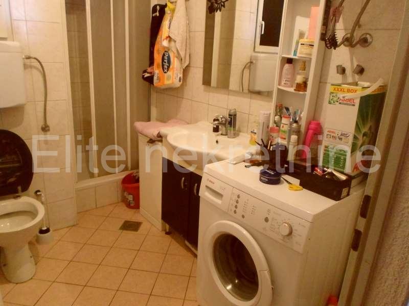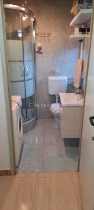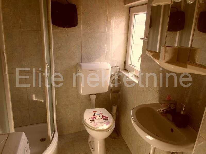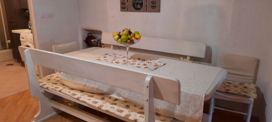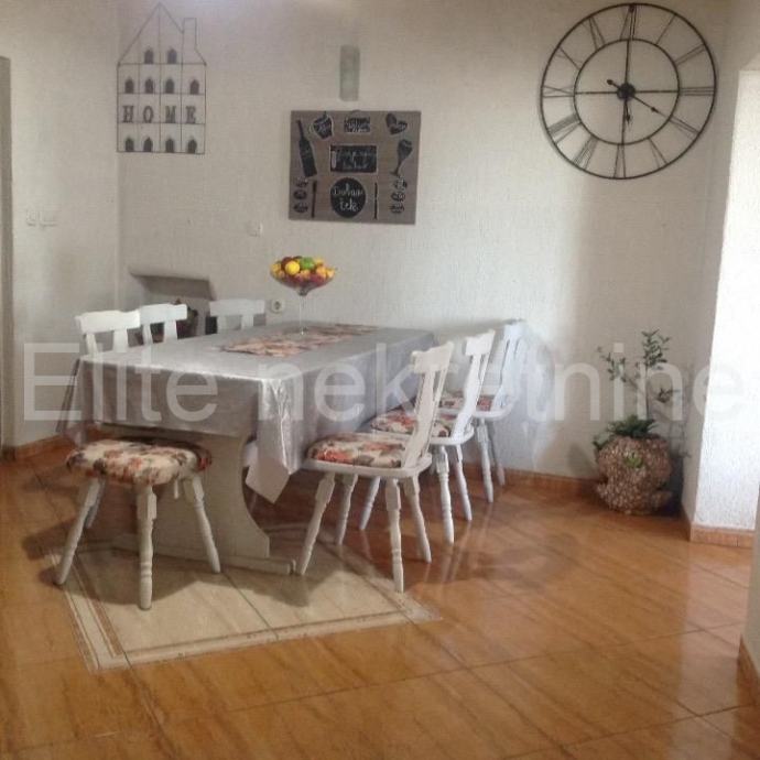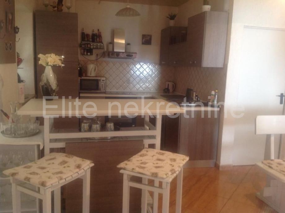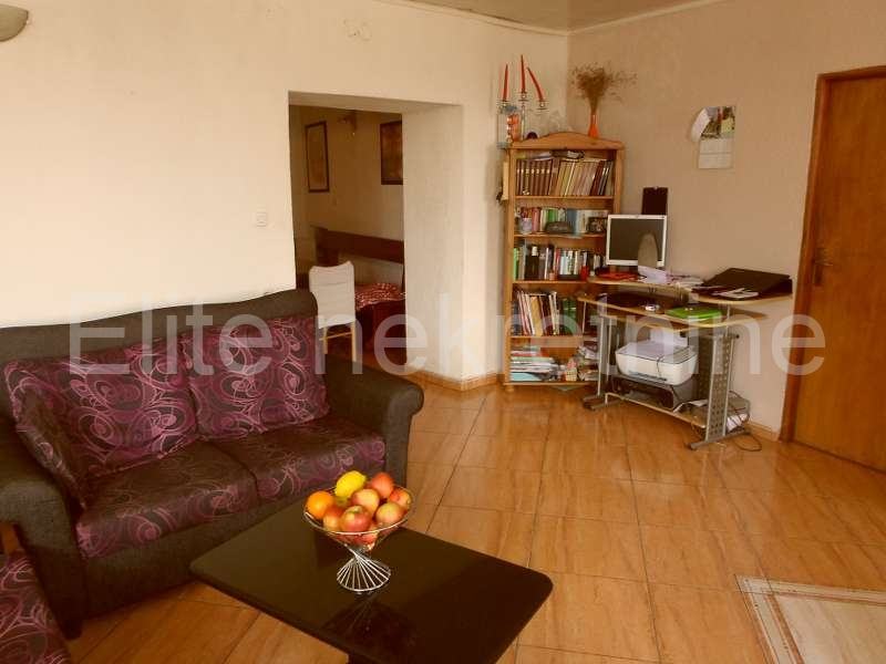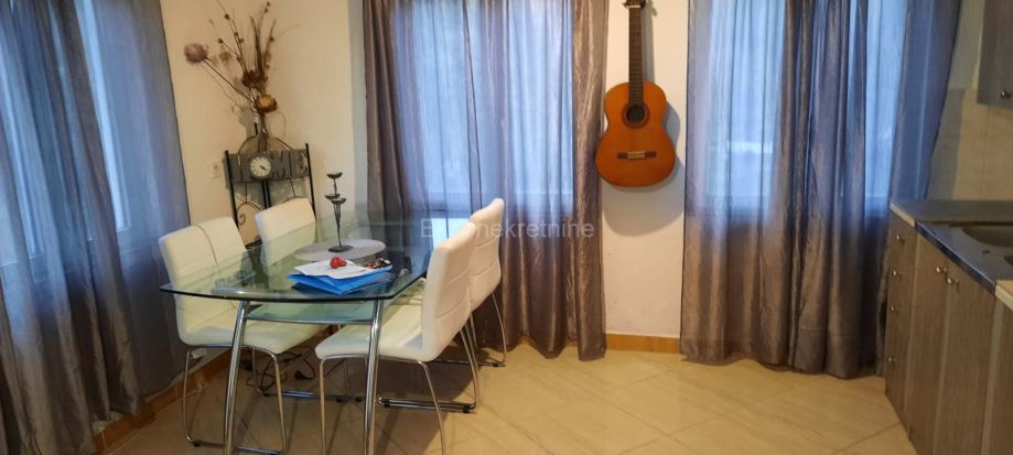 Na prvom katu smjestio se komforni dvosobni stan, nedavno preuređen, veličine 100 m2. Sastoji se od dvije spavaće sobe, prostranog dnevnog boravka, kuhinje s blagavaonom i kupaone.Međukat nudi studio apartman/garsonijeru koja može poslužiti kao nekretnina za turistički najam. Sastoji se od jedne sobe, male kuhinje i kupaonice.