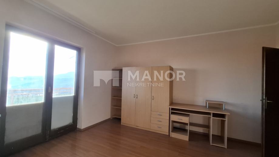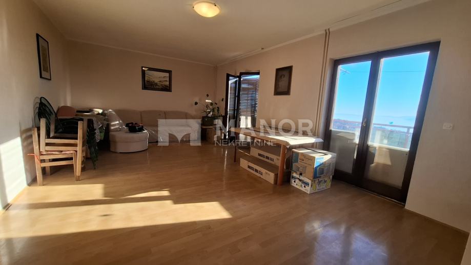 se pruža pogled na cijeli Kvarnerski zaljev. Stan je uredan i useljiv uz mogućnost uređenja po vlastitim