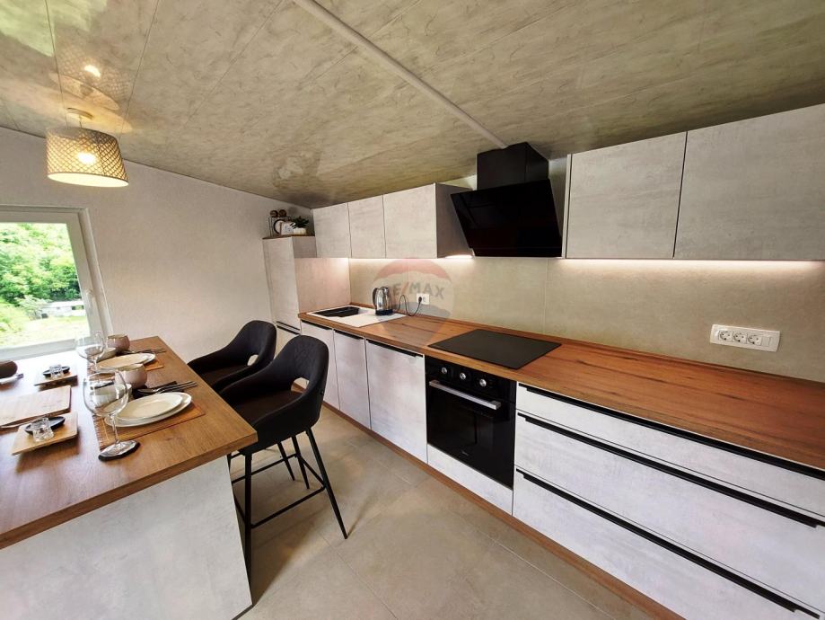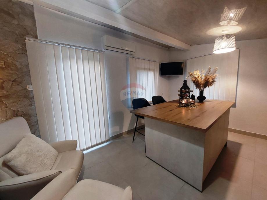 Dva stana su kategorizirana kaoi apartmani, na I katu 2S+DB od cca. 110m2 i jednosobni stan 40m2 na II katu s terasom.