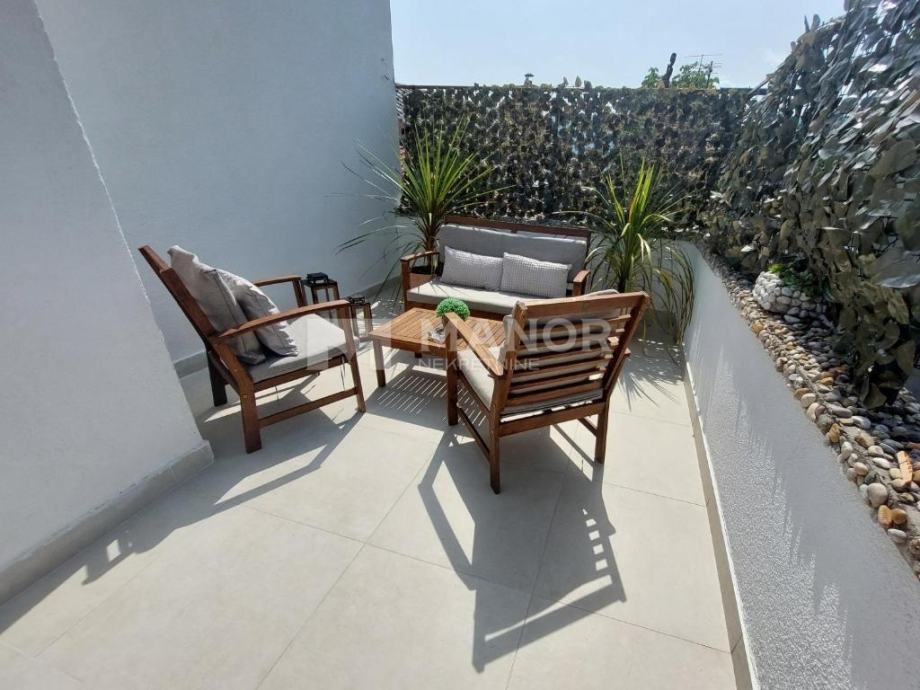 Na katu se nalazi 2S+DB stan površine 100 m2. Na međukatu se nalazi garsonijera s