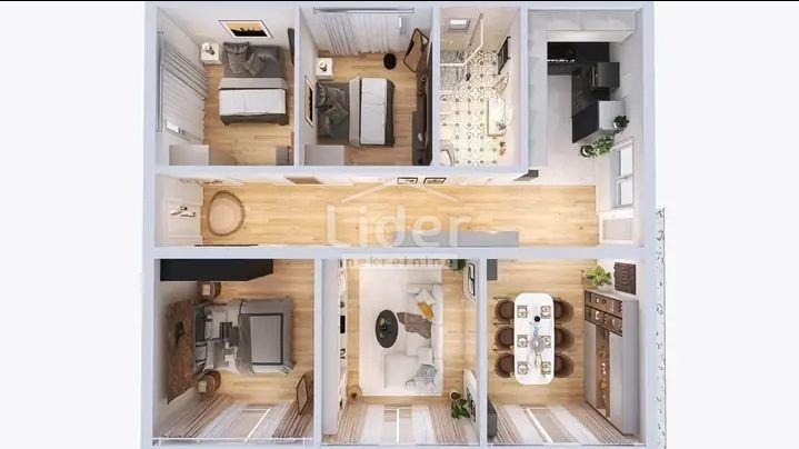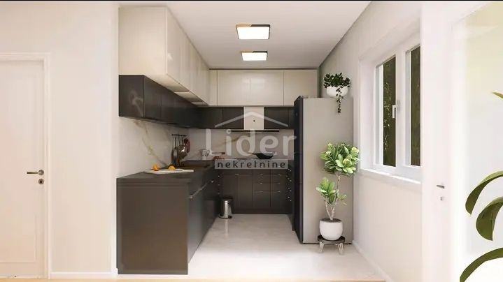 Sastoji se od hodnika, kuhinje s blagovaonom, dnevnog boravka s izlazom na balkon s kojeg se pruža pogled na more, tri spavaće sobe od kojih jedna ima izlaz na balkon, kupaone i dva parking mjesta. Stan je trenutno u fazi kompletne adaptacije te je moguć odabir obloga po želji.