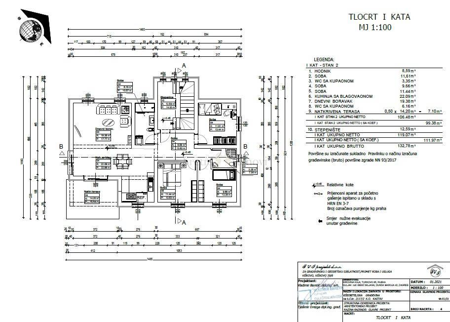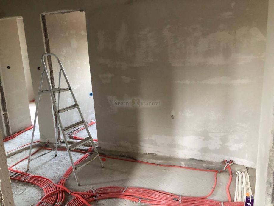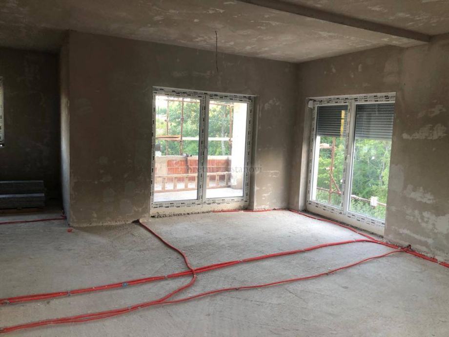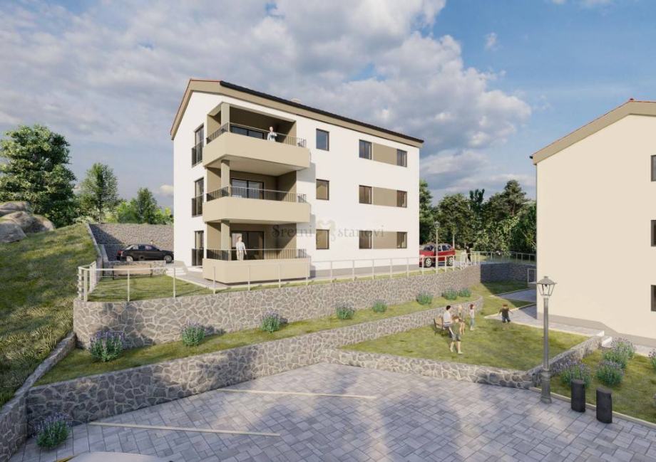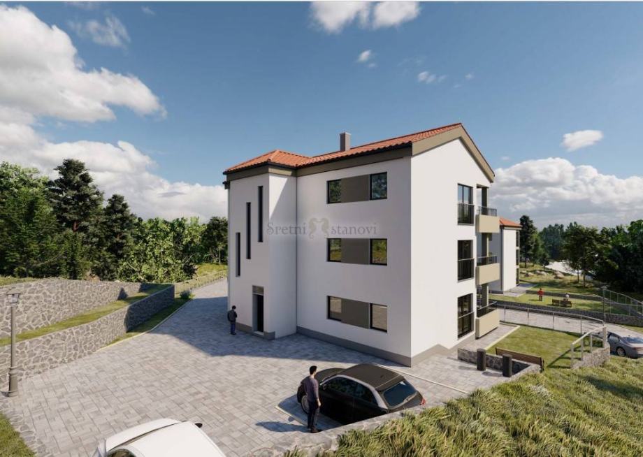 Trosobni stan nalazi se u luksuznoj novogradnji u Kastvu, na prvom katu zgrade i sastoji se od 3 spavaće sobe, dnevnog boravka, kuhinje s blagovaonicom, hodnika i dva wc-a s kupaonicom ukupne netto površine 99,38m2, a s natkrivenom terasom od 7,10m2 ukupne površine 106,48m2. Stan osim podnog grijanja i dizalice topline ima i dimnjak te klima uređaje postavljene u dnevnom boravku i spavaćim sobama. S obzirom da je nekretnina još u izgradnji, potencijalni kupac može birati podove obložene parketom ili keramikom.