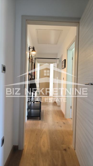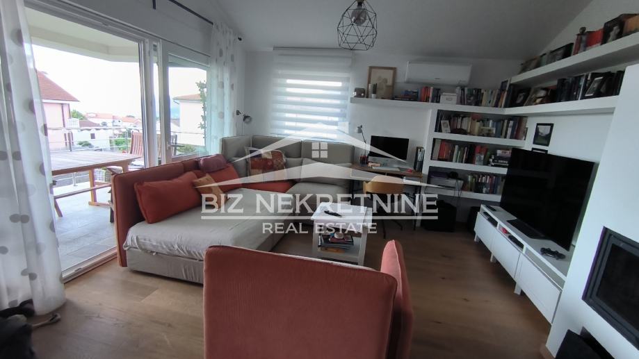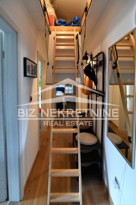 Prodaje se izvanredno uređen stan površine 110 m2, smješten u visokom potkrovlju moderne novogradnje iz 2016. godine s ukupno tri stana. Stan je temeljito renoviran 2021. godine i pruža izuzetan spoj udobnosti, funkcionalnosti i suvremenog dizajna. Nalazi se u mirnom i urednom okruženju, odlično povezanom sa svim potrebnim sadržajima.