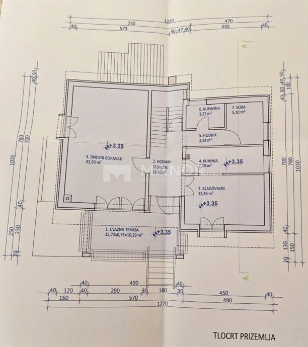 dvoetažni stan od 160 m² koji se sastoji od hodnika, prostranog dnevnog boravka, kuhinje, blagovaonice,