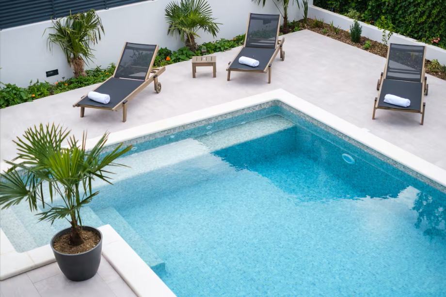 Za vas koji ipak volite biti aktivni, tu je opremljena teretana, tako da formu možete održavati i tijekom odmora. Tu je čak i plinski kamin u kojem ćete zasigurno uživati dok ispijate čašu domaćeg vina. Sav ovaj prostor otvoren je prema bazenu sa staklenim kliznim vratima, tako da ćete osjetiti povjetarac i imati osjećaj jednog ogromnog privatnog prostora. Kada su ova vrata otvorena, možete gotovo doslovno ući u bazen iz svoje dnevne sobe.