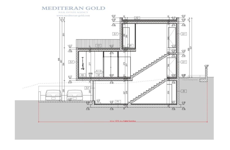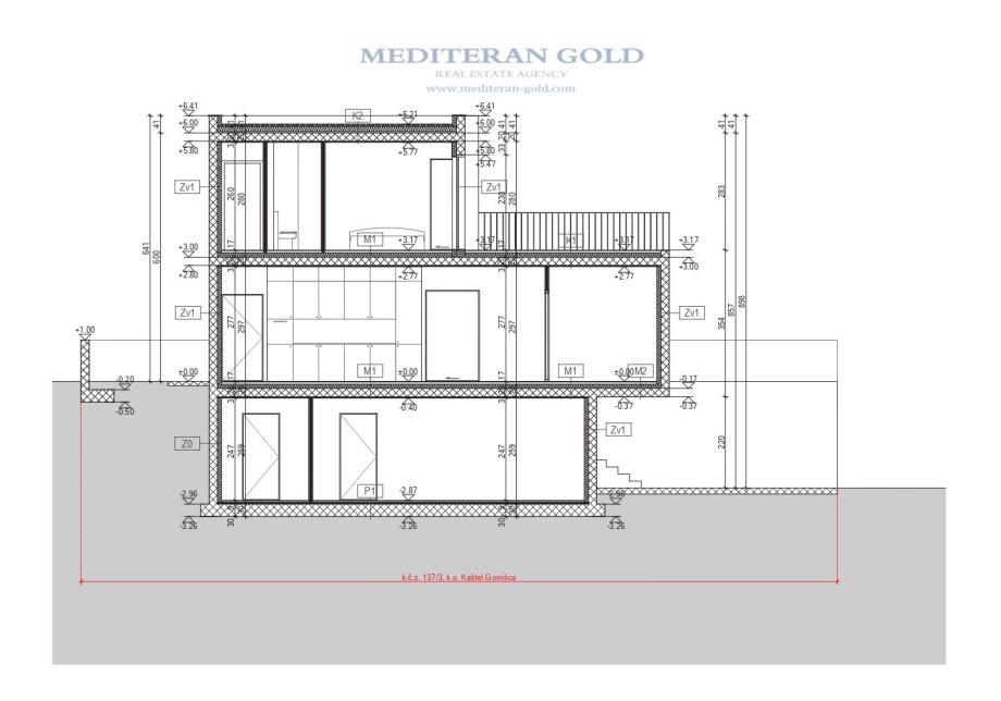 Kaštel Gomilica, prodaje se kuća od 200m2, na dvije etaže, u izgradnji sa planiranim bazenom, na zemljištu od 333m2. Smještena na idealnoj lokaciji za obiteljski život ili kao investicijska nekretnina. Kuća je u fazi započete gradnje, poseduje važeću građevinsku dozvolu sa zakonom propisanom dokumentacijom, mirno okruženje, u blizini svih potrebnih sadržaja. Komforan raspored prostorija, velike terase i dvorište sa parkirnim mjestima. Savršena prilika za one koji žele savršen domi li kao investicija. Agencija naplaćuje proviziju.