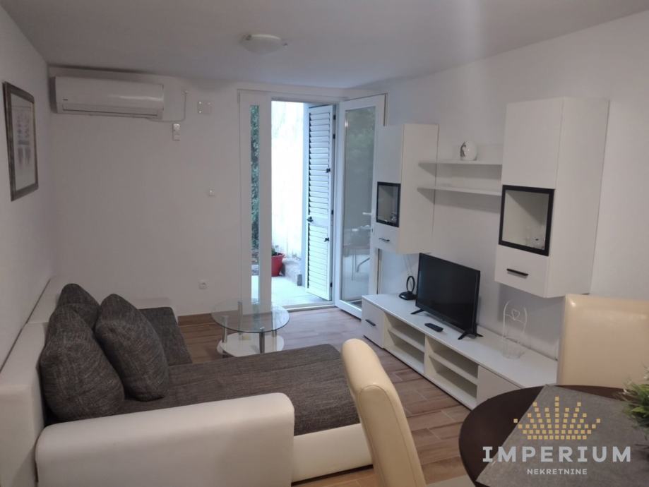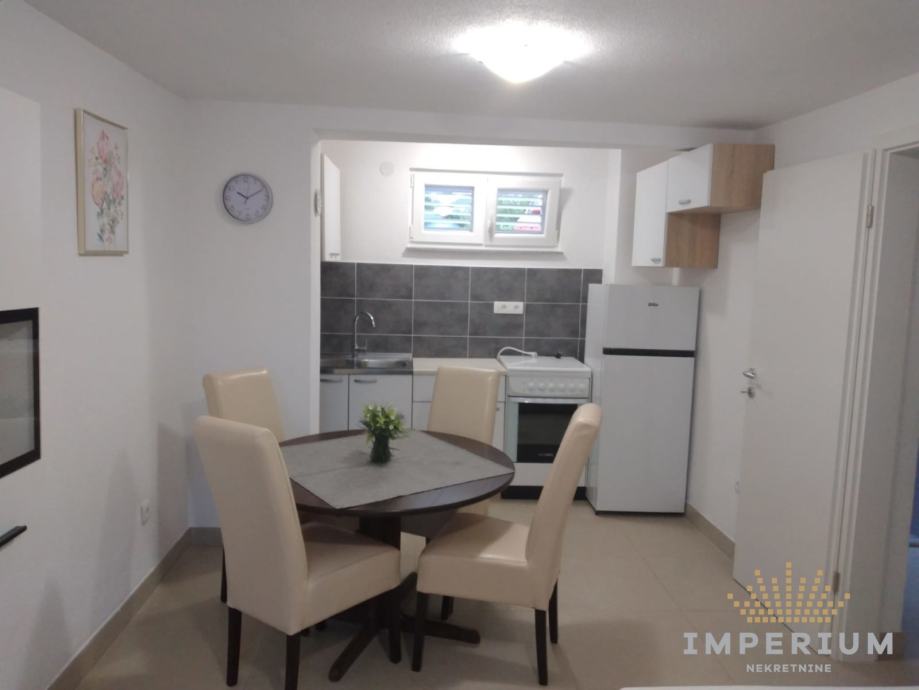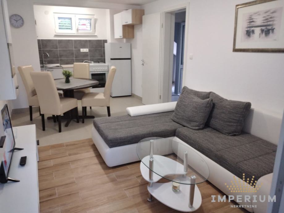 Stan je potpuno preuređen i namješten. Sastoji se od kuhinje, dnevnog boravka, wc, sobe, plus terasa od 20 m2.