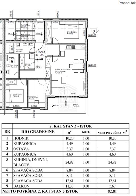 • Struktura stana: 3 spavaće sobe, 2 kupaonice, predsoblje, blagovaonica, kuhinja i dnevni boravak, ostava