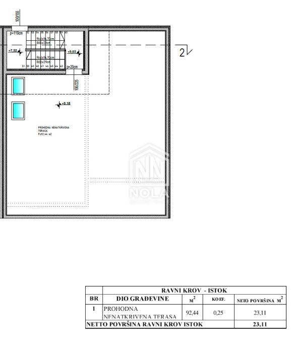 • Ravni krov s toplinskom izolacijom (20 cm XPS-a) i sintetičkom hidroizolacijskom trakom