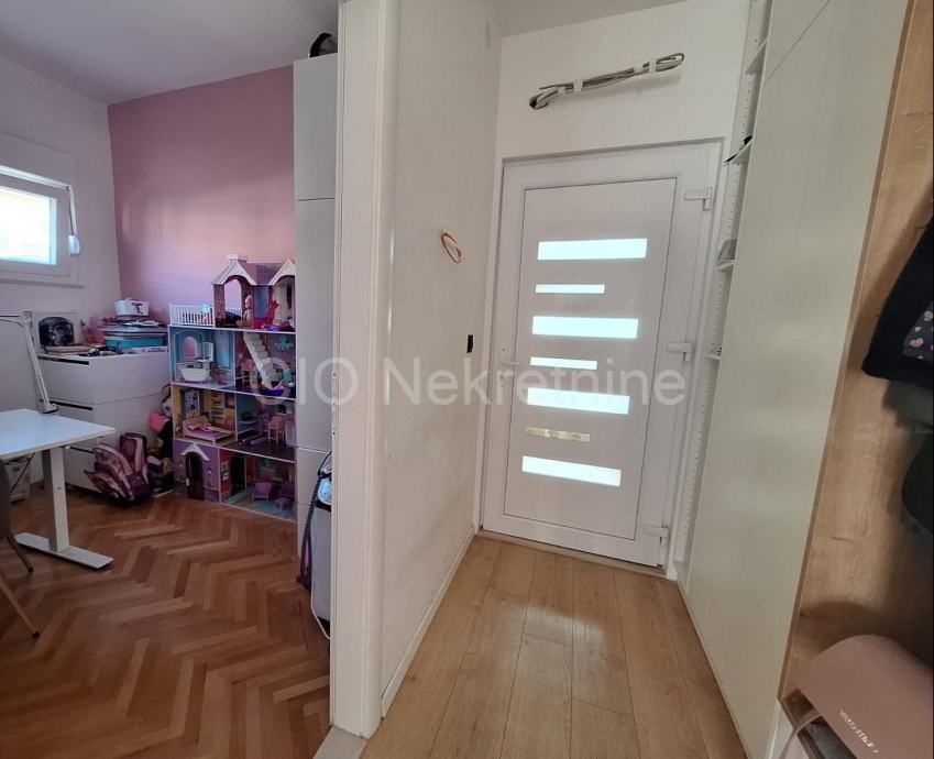 Nekretnina se sastoji od ulaznog dijela, hodnika, kuhinje s blagovaonicom i dnevnog boravka (iz kojih se izlazi na balkon južne orjentacije), kupaonice s wc-om, ostave, te tri spavaće sobe od kojih jedna ima izlaz na lođu a druga ima svoju kupaonicu s wc-om.