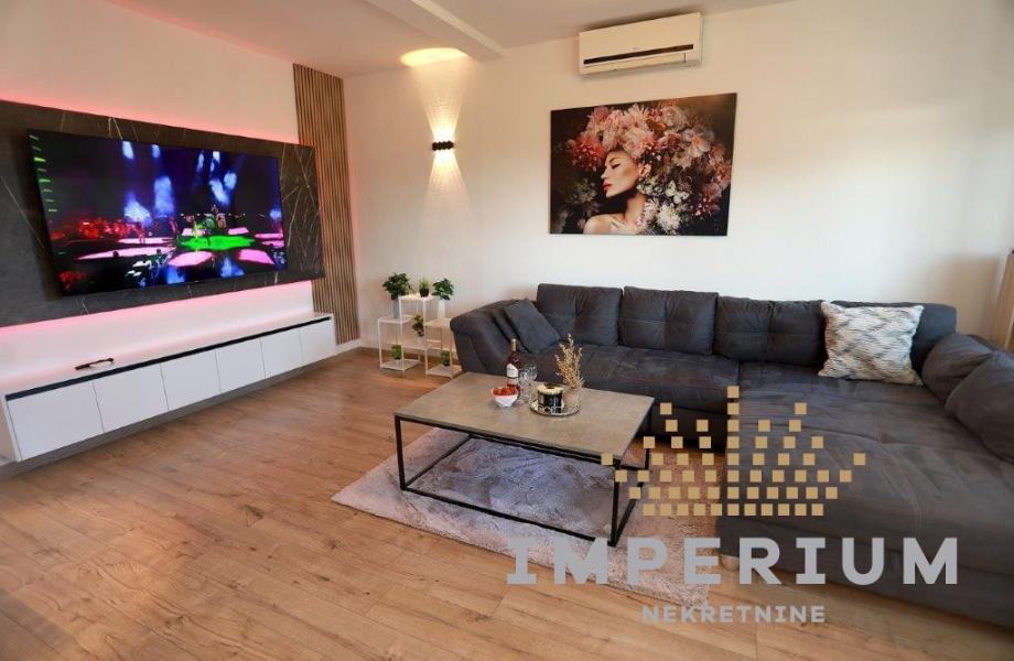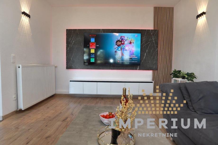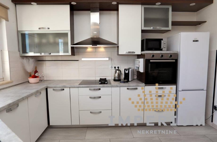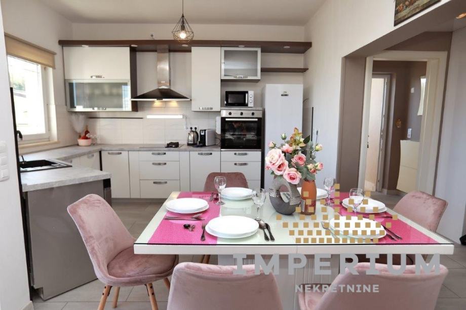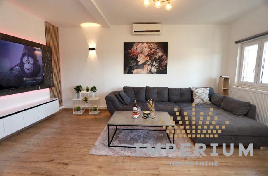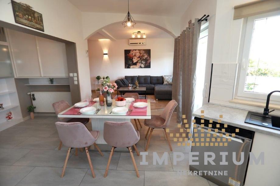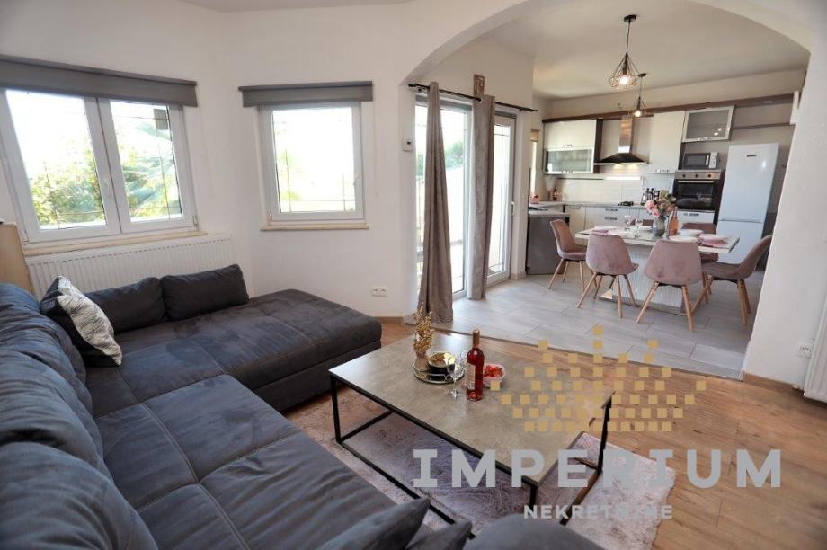 Stan ima 120 m2, nalazi se u prizemlju kuće, a sastoji se od dvije spavaće sobe, kuhinje s blagovoanom, dnevnog boravka, kupaonice, wc-a i balkona.