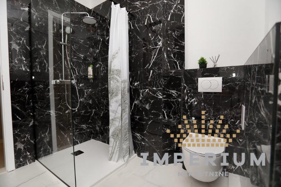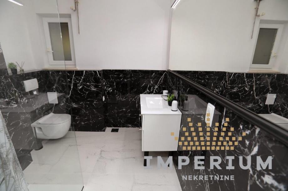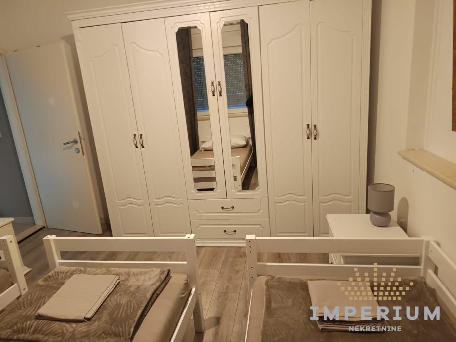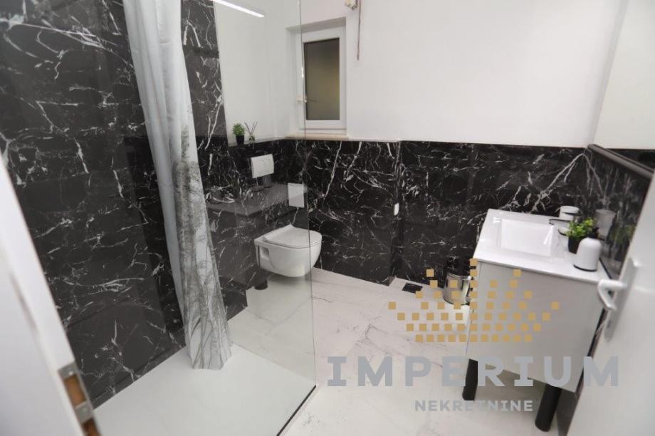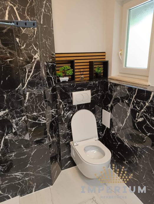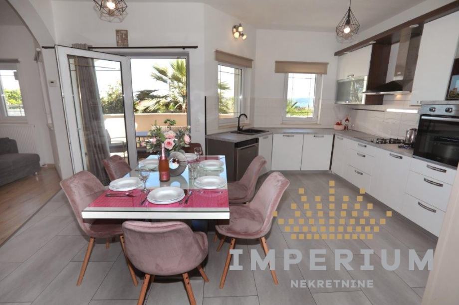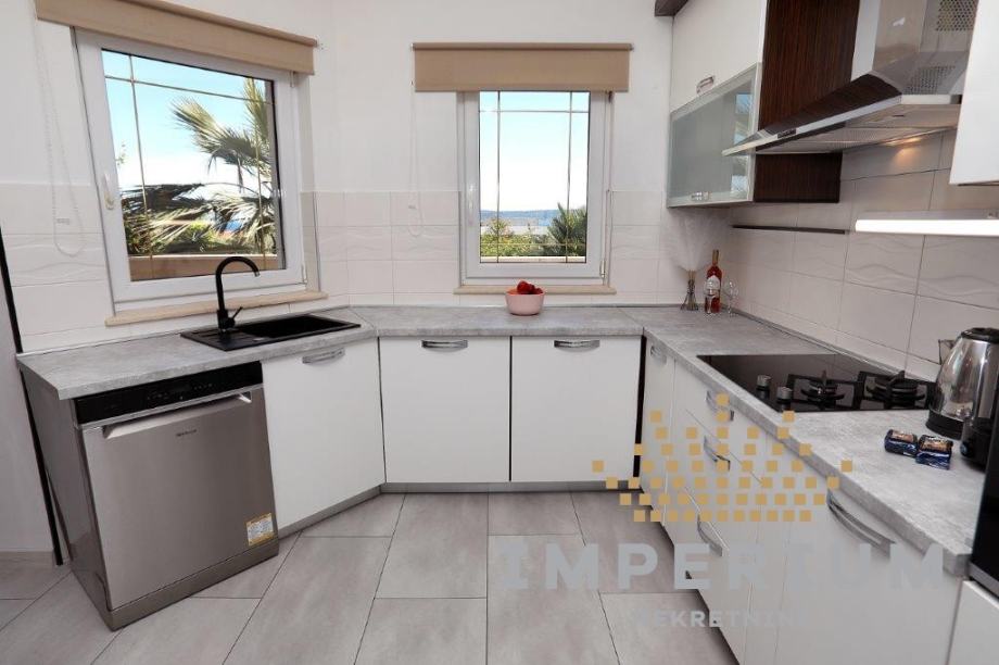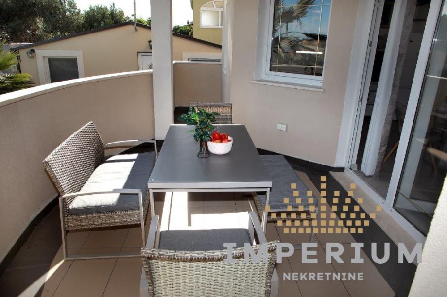 Stan ima 120 m2, nalazi se u prizemlju kuće, a sastoji se od dvije spavaće sobe, kuhinje s blagovoanom, dnevnog boravka, kupaonice, wc-a i balkona.