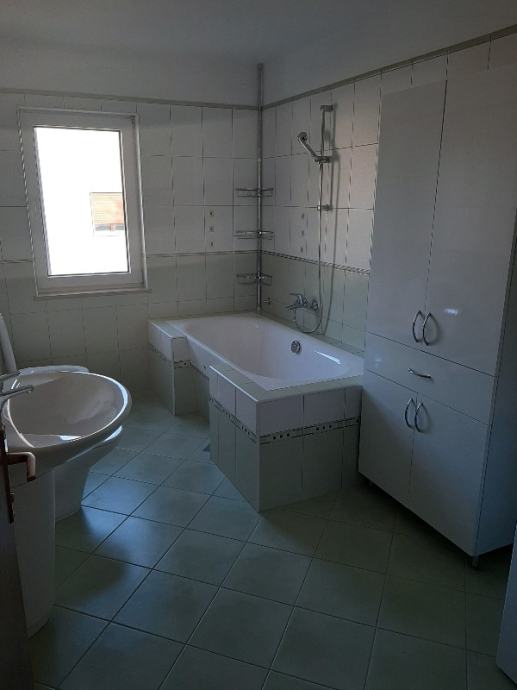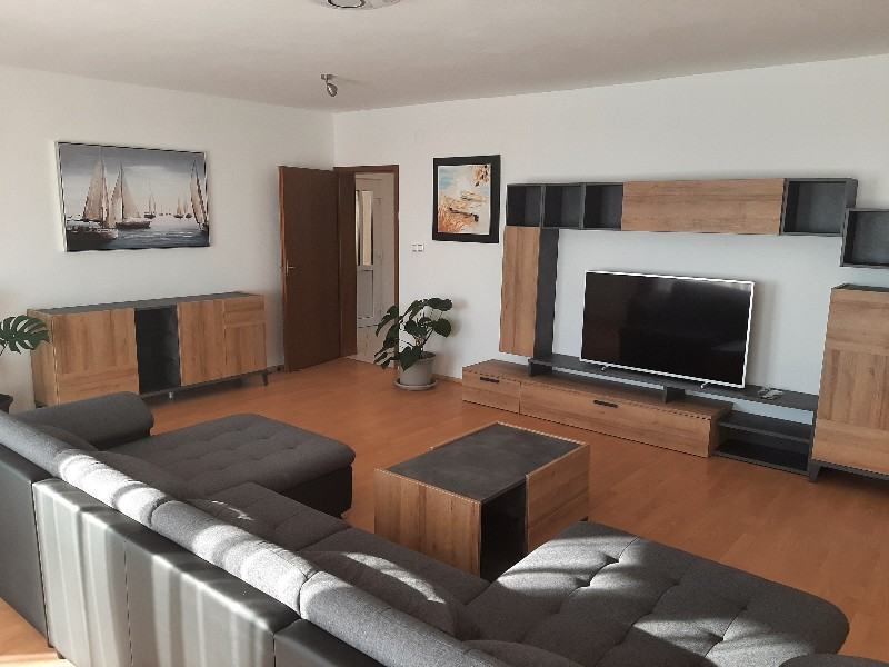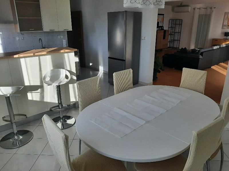 Iznajmljuje se veliki komforni luksuzni stan od 150 m2 u Kaštel Lukšiću.Stan se nalazi na drugom katu manje stambene zgrade sa prekrasnim pogledom na more.Sastoji se od 3 spavaće sobe sa balkonima,hodnika,ostave,2.kupaonice,kuhinje,blagavaonice,velikog dnevnog boravka od 50 m2 i južnog balkona.Stan je opremljen novim kvalitetnim namještajem(komplet namješten).Pripadaju mu 2 parking mjesta ispred zgrade.Iznajmljuje se isključivo na duži period.Cijena- po dogovoru