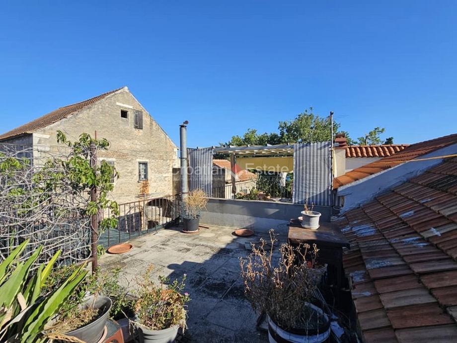 Prodajemo kuću u nizu smještenu na odličnoj lokaciji u centru Kaštel Lukšića blizu mora. Stambena površina kuće je 300 m2, a prostire se na prizemlje koje se sastoji od dvije konobe i sobe, na prvom katu su kuhinja s blagovaonicom, tri spavaće sobe, kupatilo, wc i balkon , na drugom katu su četiri spavaće sobe, kupatilo i kuhinja s blagovaonicom. Unutarnje stepenice vode u potkrovlje sa izlazom na terasu od 40 m2 s lijepim pogledom na more i krovove Kaštela. Zbog svoje pozicije u povijesnoj jezgri kuća je idealna za autentičan boutique hotel, luksuzne sobe sa kupatilima ili za obiteljski život.