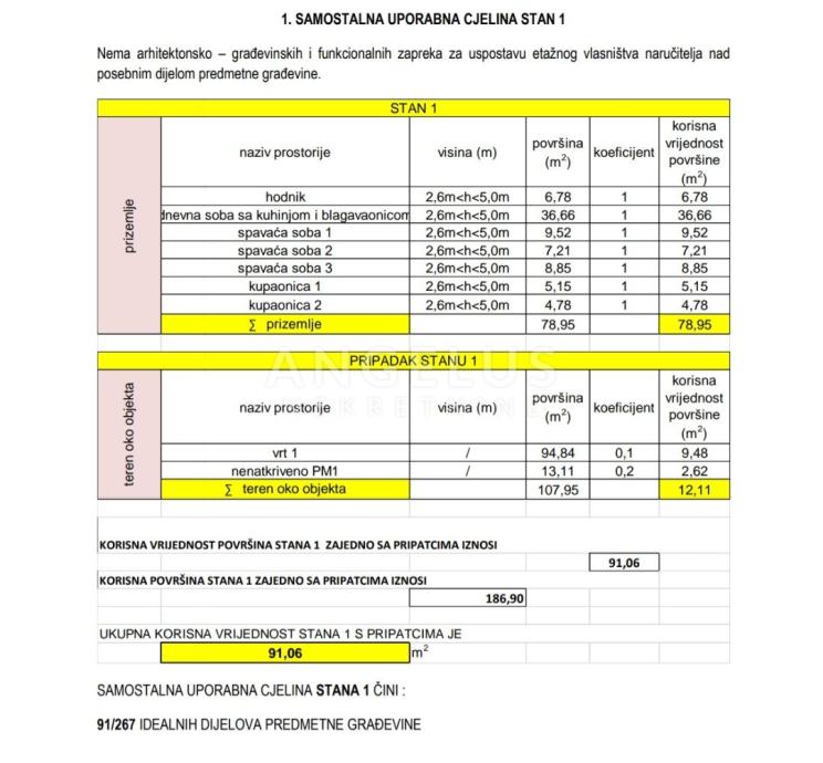 Predmet kupoprodaje je trosoban stan S1 koji se nalazi u prizemlju sa okućnicom, ukupne netto površine sa pripatcima 92,26 m2.