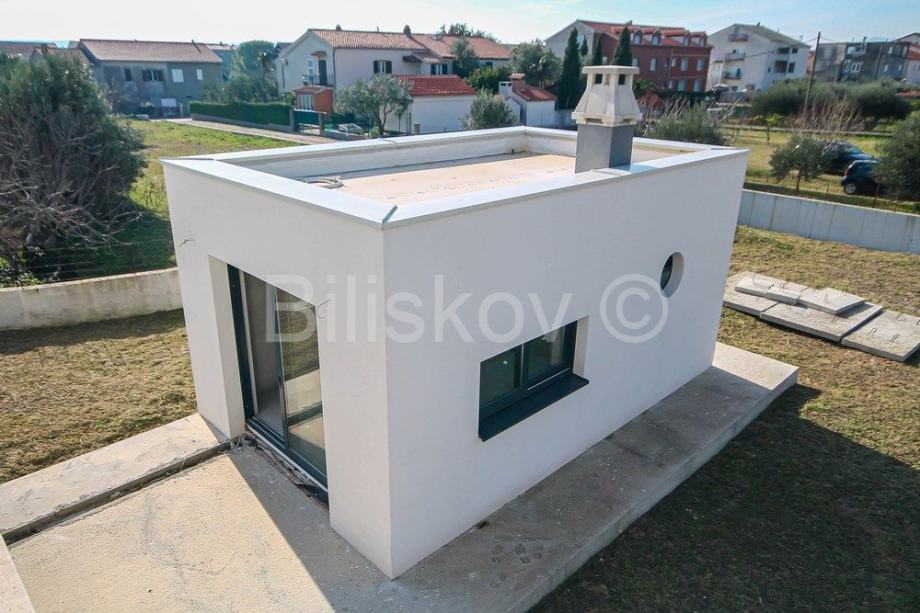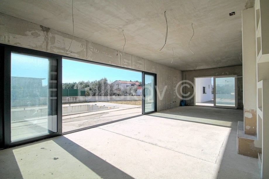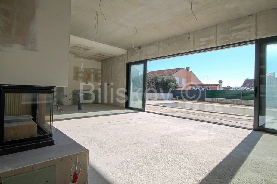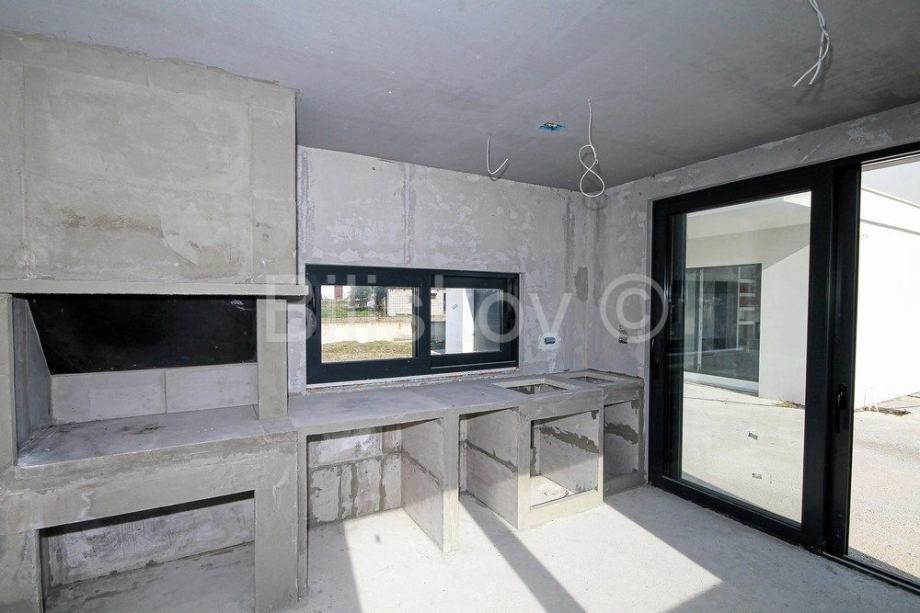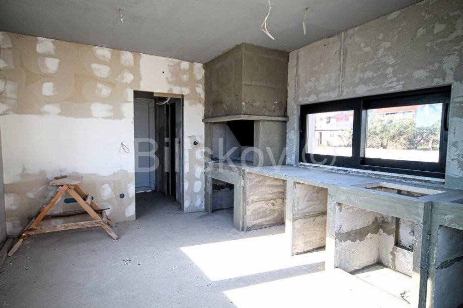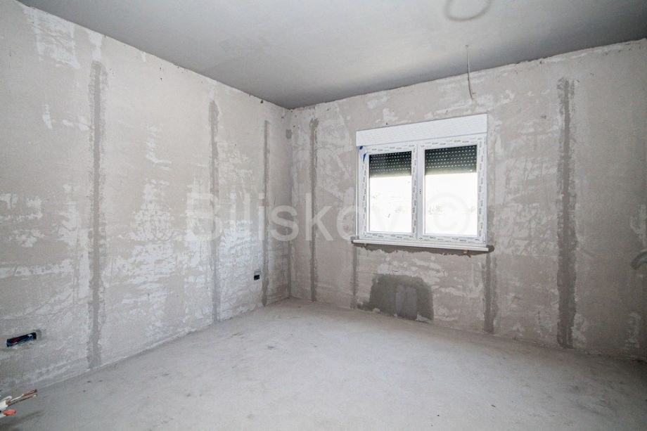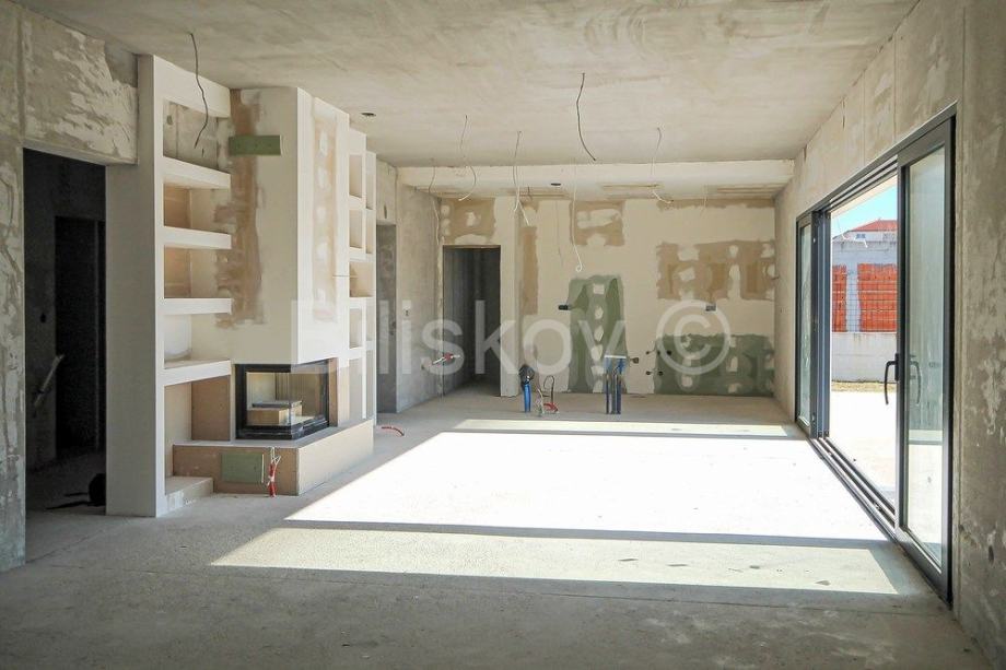 Izuzetno kvalitetna gradnja. Završeni grubi radovi te fasada (stiropor 20cm). Postavljene instalacije struje i vode. Priprema za klimatizaciju - predviđena klima uređaj MULTI - SPLIT parapetni. Priprema za električno podno grijanje u kupaonicama. Kamin u dnevnom boravku. Instalacije centralnog usisavača / centralnog bojlera PTV. Instalacije IT.