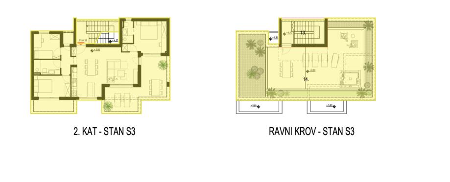 EKSKLUZIVNA PRODAJA | Kaštel Lukšić, trosoban penthouse položen na drugoj etaži manje stambene zgrade s privatnom krovnom terasom i pogledom na more.Stan je podijeljen na tri spavaće sobe, dvije kupaonice ( od kojih je jedna u sklopu glavne spavaće sobe ), hodnik, kuhinju s blagovaonicom , te dnevnog boravka s izlazom na terasu površine 21, 81 m2. Stanu pripada prostrana krovna terasa s pogledom na more površine 94, 68 m2, te dva vanjska nenatkrivena parkirna mjesta uz objekt.Površina zatvorenog stambenog prostora iznosi 73, 45 m2, a ukupna neto korisna površina stana s pripadajućim dijelovima ( balkon, terasa, krovna terasa i dva parkirna mjesta ) iznosi 123, 55 m2.Svi stanovi će biti opremljeni podnim grijanjem, klima jedinicom, električnim roletama, te velikim kliznim stijenkama koje će u kombinaciji s južnom orijentacijom omogućiti ugodan dnevni prostor s puno svjetlosti.Lokacija je pogodna za miran život , u blizini svih potrebnih sadržaja. Parcela je položena uz cestu širine 5,5 metara, koja spaja staru i novu kaštelansku cestu, što olakšava pristup i povezanost automobilom. U blizini su osnovna škola, trgovine, restorani, a do plaže treba otprilike 10- 15 minuta laganog hoda.Za sve dodatne informacije, stojimo Vam na raspolaganju....
