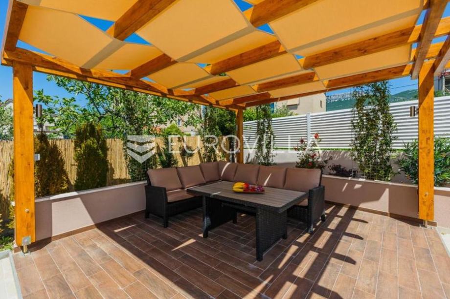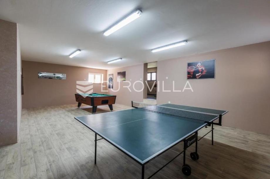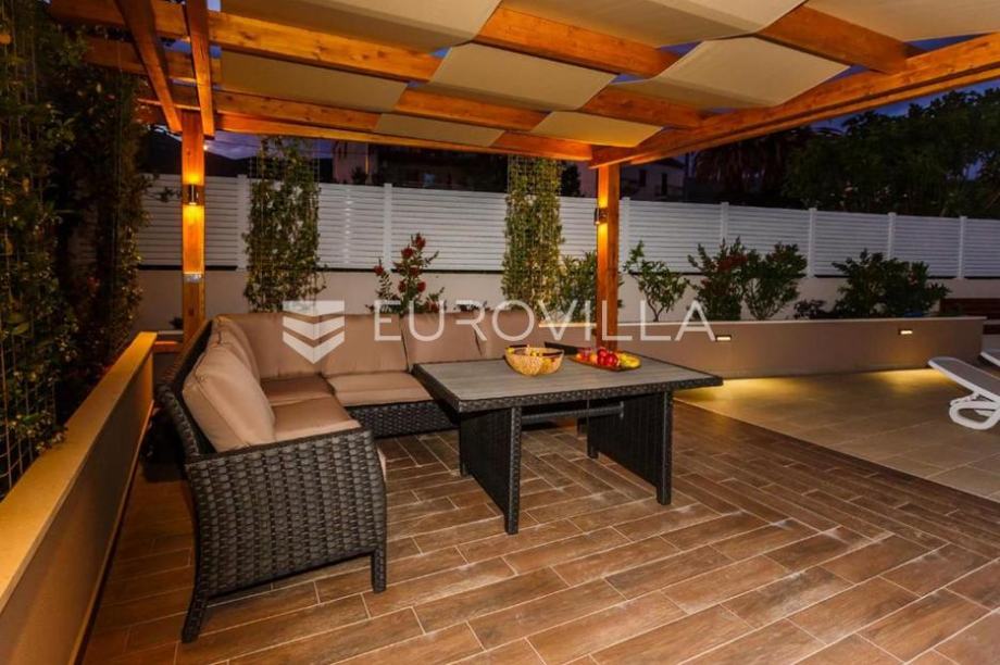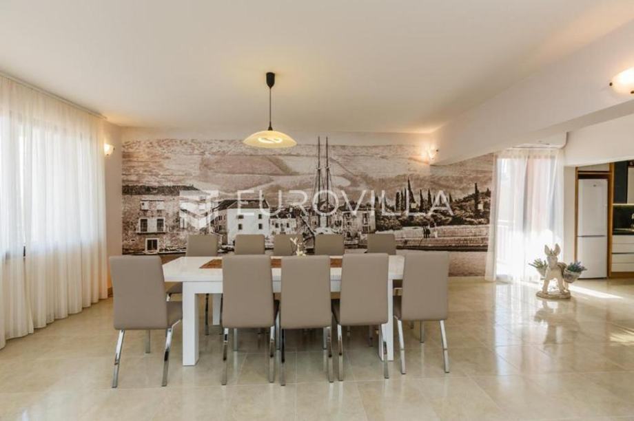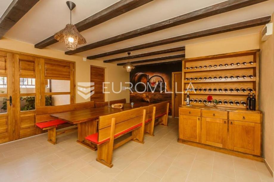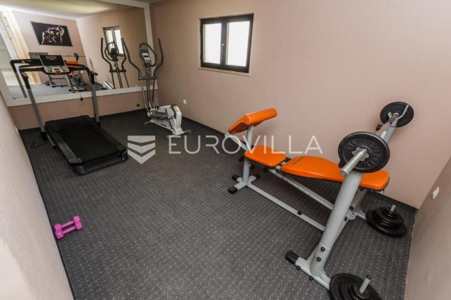 Kaštel Lukšić, na mirnoj lokaciji, svega nekoliko minuta hoda od mora, smjestila se odlična vila s bazenom.U prostranom dvorištu nalazi se grijani bazen s ležaljkama, te ugodan prostor za opuštanje i druženje.Objekt je podjeljen na četiri etaže:U podrumu se nalazi potpuno opremljena kuhinja, teretana, sauna s kupaonicom, te prostor za igru s biljarom i stolnim tenisom.Prizemlje nudi modernu kuhinju, udoban dnevni boravak, dvije kupaonice, dvije spavaće sobe te prostranu natkrivenu terasu savršenu za uživanje s obitelji ili prijateljima.Na drugoj i trećoj etaži, položen je peterosoban stan, koji je podjeljen na kuhinju s blagovaonicom, prostrani dnevni prostor s izlazom na terasu, četri kupaonice, pet spavaćih soba i terasu s pogledom na more.Lokacija je iznimna, na samo nekoliko koraka od svih potrebnih sadržaja ( trgovina, kafića, restorana,... ), kao i plaže.Ova elegantna i prostrana vila odiše udobnošću i luksuzom - savršen spoj za one koji traže kvalitetan životni prostor ili izvrsnu investiciju u turizam.Za sva dodatna pitanja, stojimo Vam na raspolaganju!...