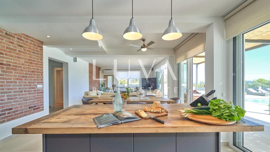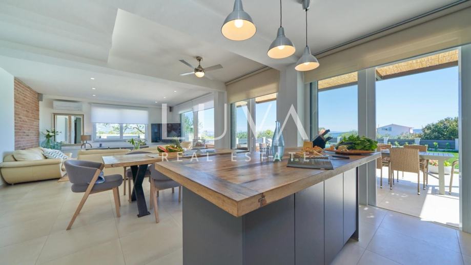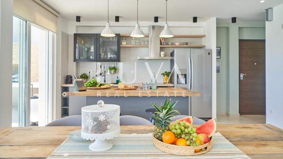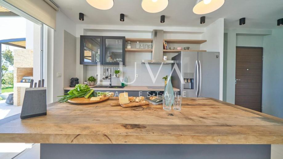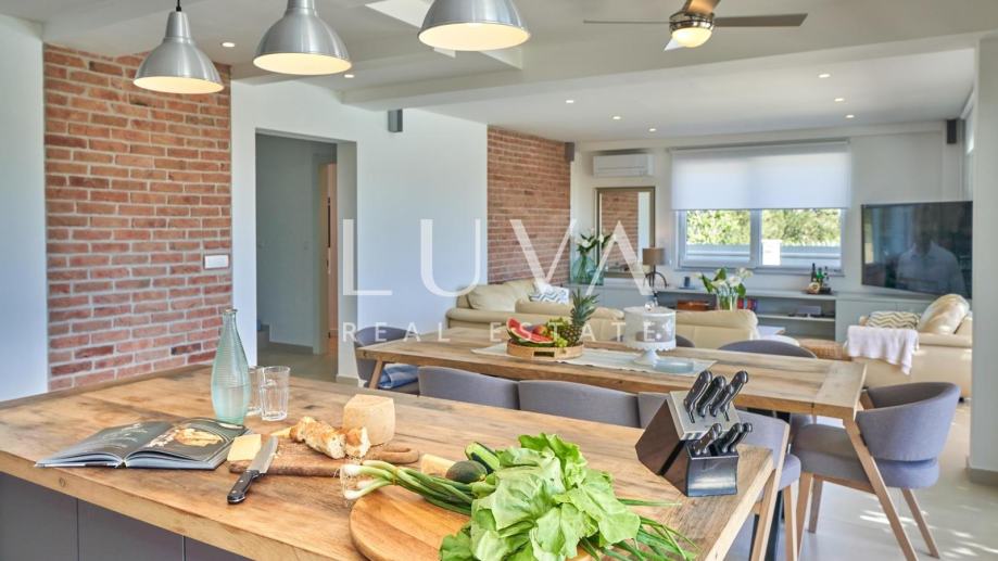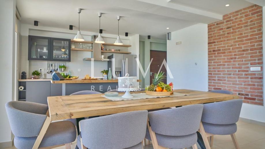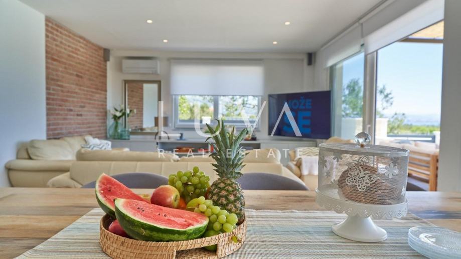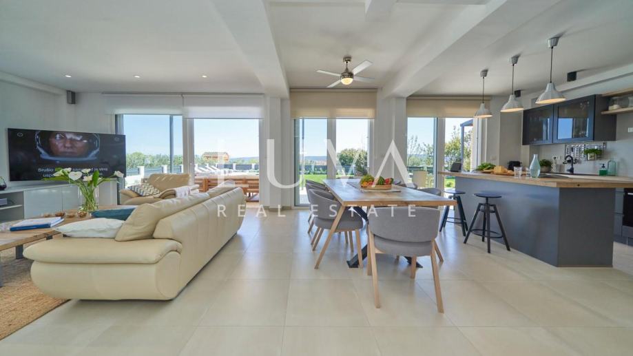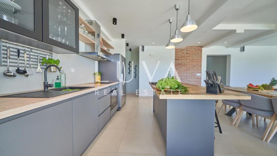 • Dnevni prostor: Moderan koncept otvorenog prostora s dnevnim boravkom, blagovaonicom i potpuno opremljenom kuhinjom.