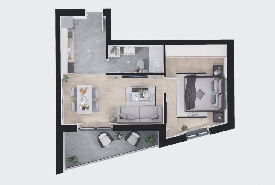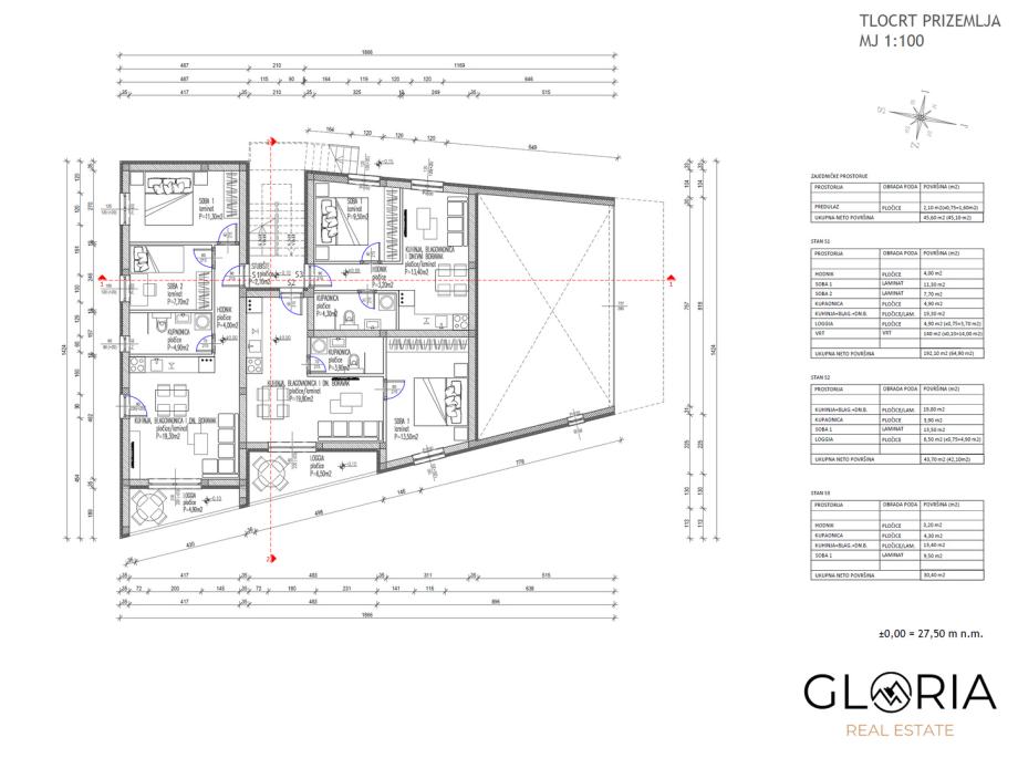 Ukupna neto površina 43,70 m2 (42,10 m2 – prodajna površina)