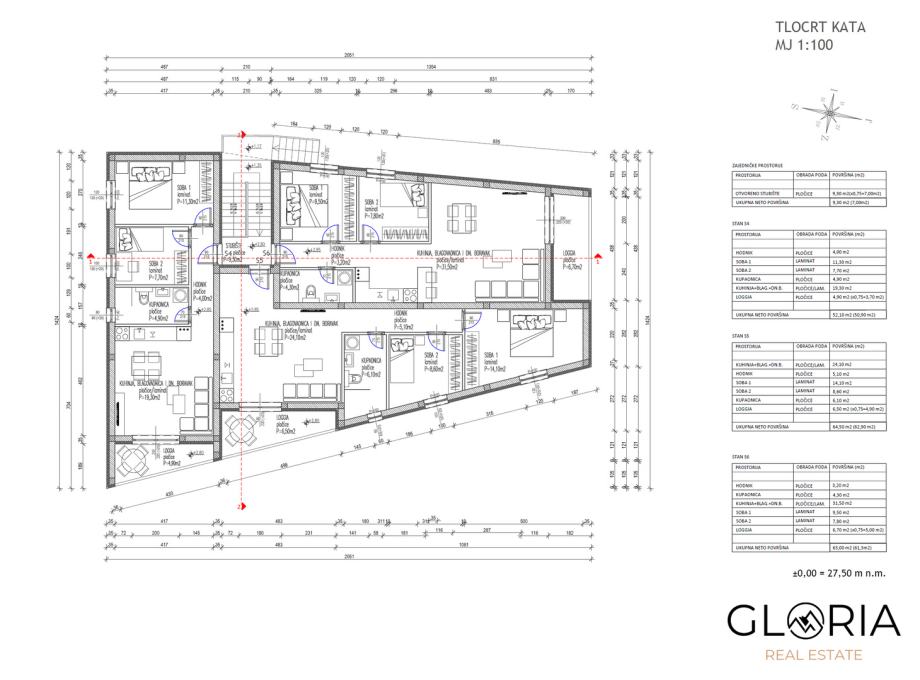 Ukupna neto površina 52,10 m2 (50,90 m2 – prodajna površina)