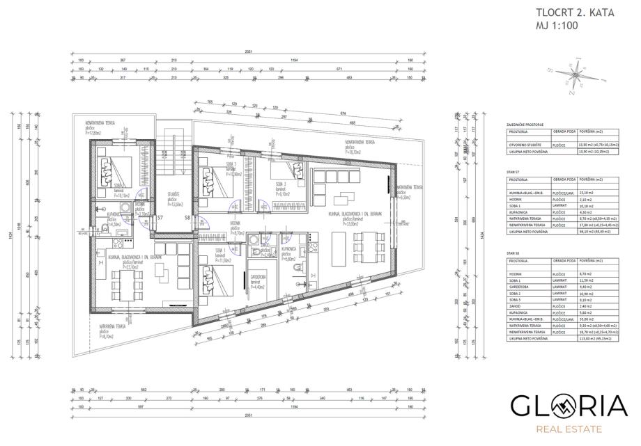 Ukupna neto površina 113,80 m2 (95,15 m2 – prodajna površina)