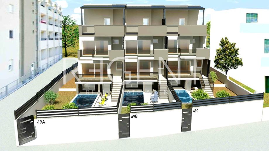 Na mirnoj lokaciji u Kaštel Štafiliću, na samo 100 metara od mora, prodaje se vila u nizu ukupne neto površine 219 m² (bruto 333 m²) s vlastitim dvorištem, bazenom i liftom za 8 osoba koji povezuje sve etaže. Objekt je osmišljen da pruži visoku razinu komfora, privatnosti i funkcionalnosti.Vila se sastoji od podruma sa pomoćnim prostorijama i praonicom, prizemlja s dnevnim boravkom, kuhinjom, blagovaonicom i izlazom na terasu s bazenom, kata s tri spavaće sobe, kupaonicom i lođom te prostrane krovne terase s panoramskim pogledom.Dvorište ukupne površine 80 m² uključuje bazen od 14 m² i uređeni prostor za opuštanje.Smještena u mirnom okruženju, vila je u neposrednoj blizini mora, a ujedno izvrsno povezana s Trogirom, Splitom i zračnom lukom, dok su trgovine, škole i svi potrebni sadržaji lako dostupni.Nekretnina je trenutno u izgradnji, a dovršetak se očekuje kroz 10–12 mjeseci. Ova vila predstavlja idealan izbor za obiteljski život, odmor uz more ili kao investiciju s visokim potencijalom povrata kroz turistički najam.Za više informacija, kontaktirajte našeg agenta na brojeve telefona:
