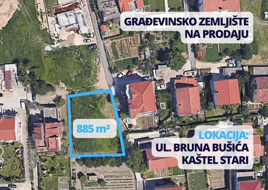 Prodaje se građevinsko zemljište ravnog terena površine od 885 m², smješteno u Ul. Bruna Bušića u Kaštel Starom, udaljeno cca 350 metara južno od brze ceste i 750 metara od rive i prvih plaža. Ova lokacija nudi mirno okruženje s brzim pristupom svim potrebnim sadržajima, čineći je idealnom za život ili investiciju.
