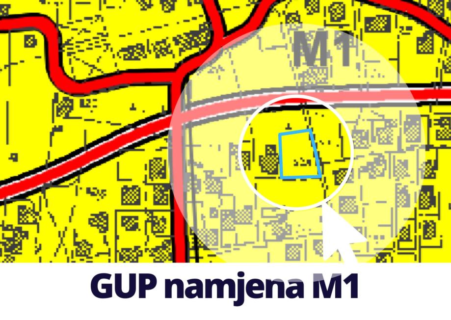 Prema GUP-u, zemljište se nalazi u zoni M1 (mješovita, pretežito stambena namjena), pri čemu je podijeljeno potokom pod upravom Hrvatskih voda na dvije funkcionalne cjeline od 713 m² i 172 m².