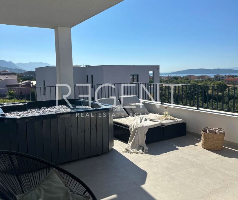 Na prodaju je prostrani trosoban stan s otvorenim pogledom na more, smješten na drugom katu manje stambene zgrade u mirnom dijelu Kaštel Starog.Ukupna površina stana iznosi približno 110 m², od čega je oko 76 m² unutarnjeg prostora, dok preostalih 34 m² čine dvije terase. Raspored obuhvaća ulaz i predsoblje, dnevni boravak s blagovaonicom i kuhinjom, tri spavaće sobe, kupaonicu, zaseban wc i ostavu.Stan je potpuno namješten i opremljen svim uređajima te spreman za useljenje. Posebnu vrijednost daje terasa s jacuzzijem koji ostaje budućem vlasniku. Uz stan dolaze i dva vanjska nenatkrivena parkirna mjesta smještena neposredno ispred zgrade.Kaštel Stari nudi ugodan život uz razvijenu infrastrukturu – u blizini su škola, vrtić, trgovine, supermarket, ljekarna i ostali sadržaji potrebni za svakodnevicu. Lokacija osigurava i brzu povezanost s glavnim prometnicama prema Splitu i Trogiru.Za sve dodatne informacije i dogovor o razgledavanju, stojimo vam na raspolaganju.Za više informacija, kontaktirajte našeg agenta na brojeve telefona: