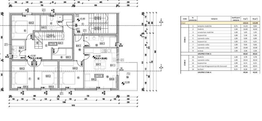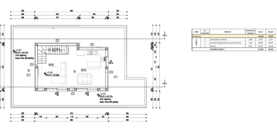 Na prodaju stavljamo dvoetažni trosobni stan na drugom katu stambene zgrade u izgradnji u Kaštel Starom.