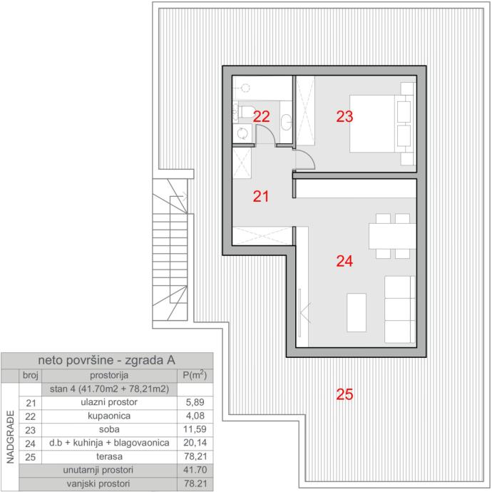 Kaštel Stari, moderna stambena zgrada s ukupno četiri stambene jedinice na mirnoj lokaciji. Zgrada će biti građena po visokim standardima, na način da prati moderan i suvremen način života. Useljenje je predviđeno u drugoj polovici 2027. godine.STAN 4- jednosoban stan u nadgrađu , koji je...Za ovu nekretninu kontaktirajte agenticu na broj telefona +385 91 2300 183.Više na Eurovilla.hr, ID: 685142Direktan link: https://eurovilla.hr/nekretnina/kastel-stari-jednosoban-stan-s-terasom-78-21-m2-i-predivnim-pogledom/685142/-----Kaštel Stari, a modern residential building with a total of four residential units in a quiet location. The building will be built to high standards, in a way that follows a modern and contemporary lifestyle. Moving in is planned for the second half of 2027.APARTMENT 4- one-bedroom apartment in... For this property contact our agent on telephone number +385 91 2300 183.More on Eurovilla.hr, ID: 685142Direct link: https://eurovilla.hr/en/property/kastel-stari-one-bedroom-apartment-with-terrace-78-21-m2-and-beautiful-view/685142/...