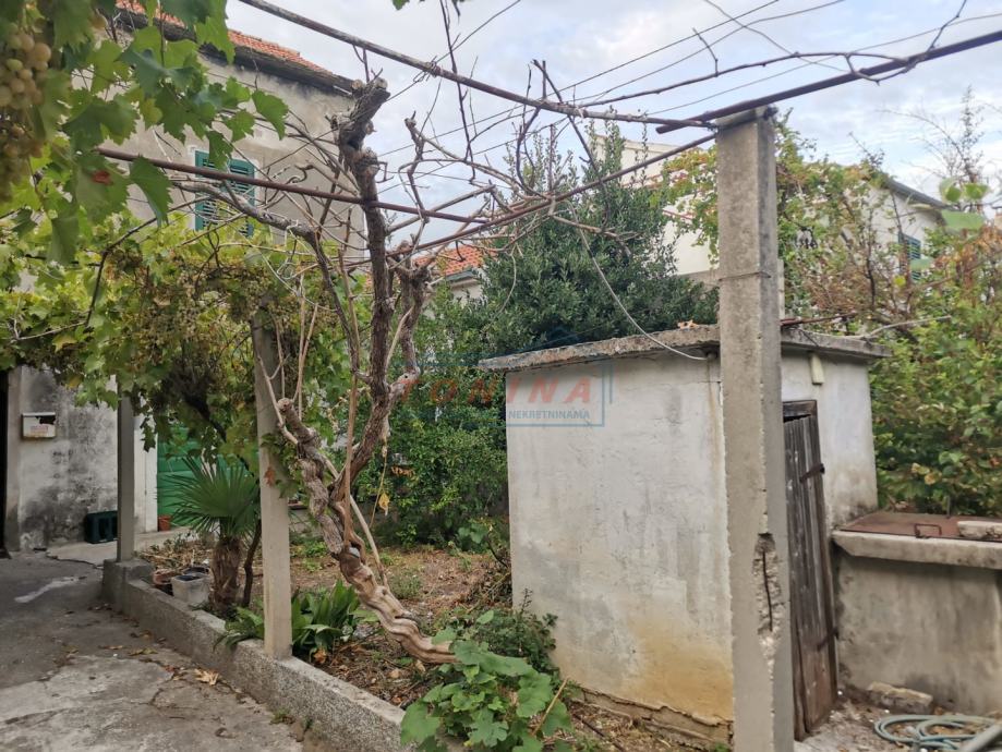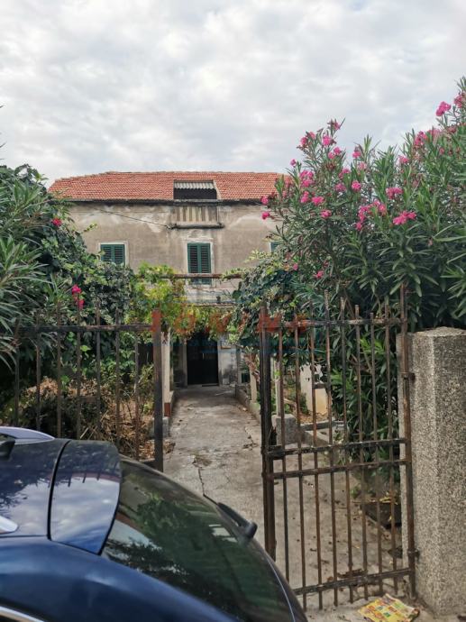 Samostojeća kuća/vila povr.260m2, u centru mjesta, cca 100m od mora, na tri etaže, s dodatnim objektima u vrtu iza kuće povr.40m2 ,okućnica povr.420m2, prilaz s dvije strane - gornje i donje ulice, pogled na mjesto, potrebna adaptacija.