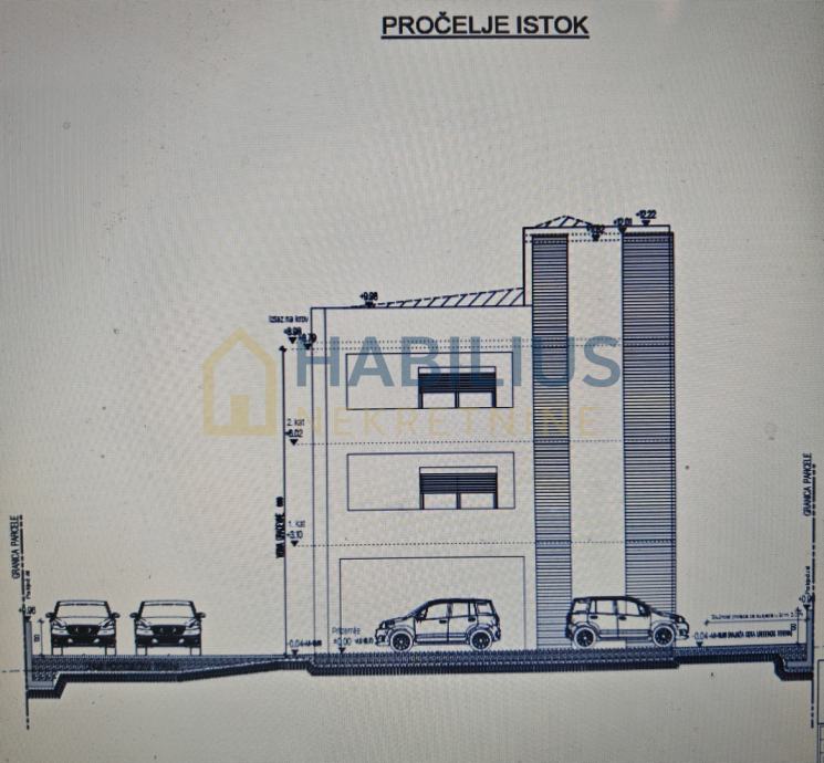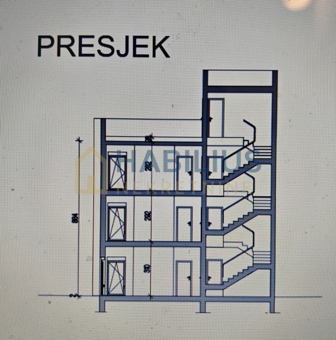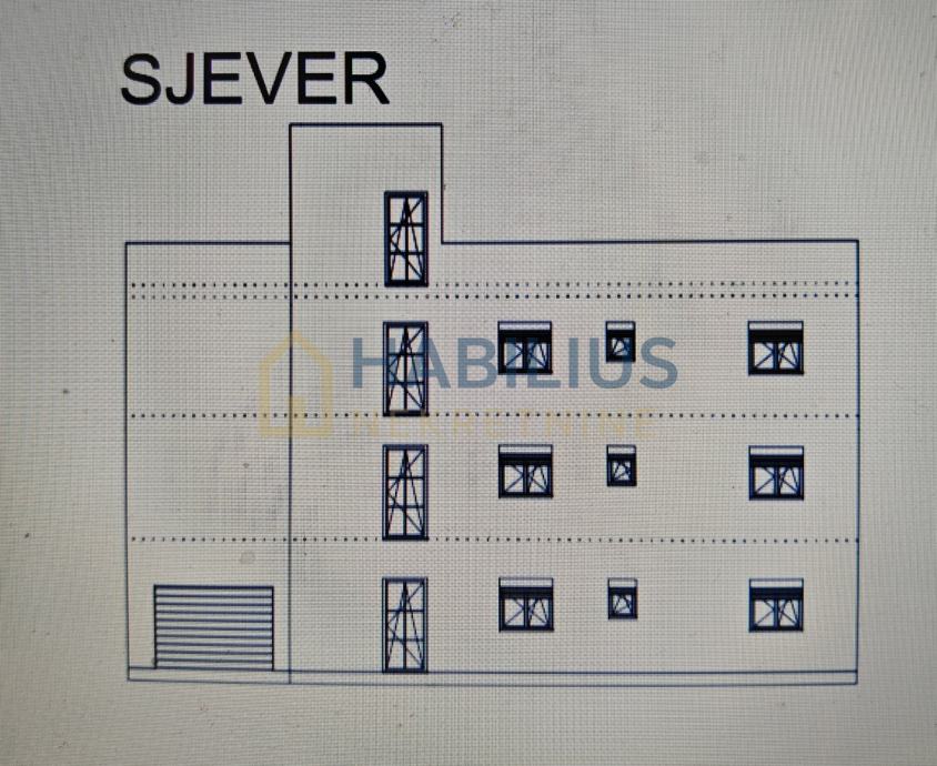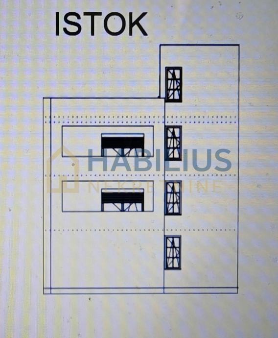 Prodaje se prostrani stan od 105 m2 (podne površine 117 m2), koji je u naravi podijeljen u dva (jednosobni komforni i dvosobni komforni), svaki sa svojim vlastitim ulazom. Smješten je na 1. katu stambene zgrade koja ima ukupno tri stana. Zgrada je u bloku sa susjednom kućom, i nalazi se između stare (udaljenost 130 m) i nove ceste (udaljenost 360 m). Udaljenost od mora je 400 m. U blizini svih sadržaja potrebnih za ugodan život – ambulanta, javni prijevoz, trgovina, vrtić, škola, plaža...te je idealan za obitelj, ali i kao investicija.