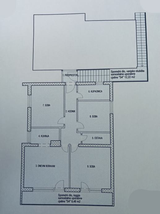 - na prvom katu poslovnog prostora je terasa površine 25m2, a spojena sa vanjskim stubištem stana