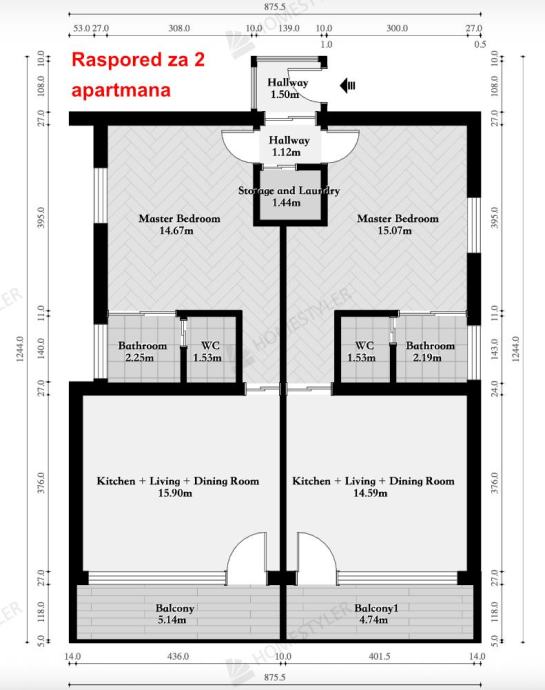 Zbog svog rasporeda, prostor je moguće vrlo jednostavno podijeliti na dvije manje stambene jedinice glavnim zidom u smjeru sjever-jug, pri čemu bi oba stana imala zaseban ulaz i vlastiti dio južnog balkona - što ovu nekretninu čini izvrsnom prilikom za dugoročni najam ili turističko iznajmljivanje. (Idejno rješenje podjele dostupno je u priloženim tlocrtima.)