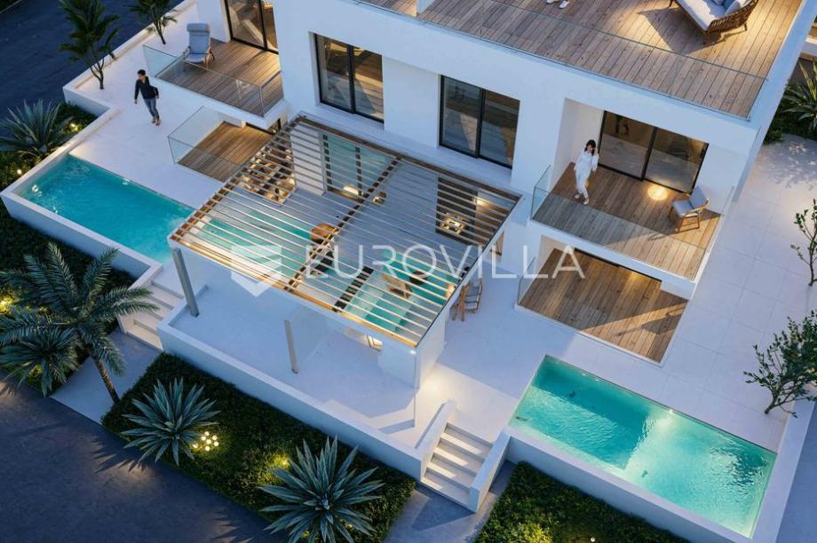 Nekretnina se nalazi na parceli od 639 m2, u novoizgrađenom privatnom naselju luksuznih vila, na cesti od Splita do zračne luke.