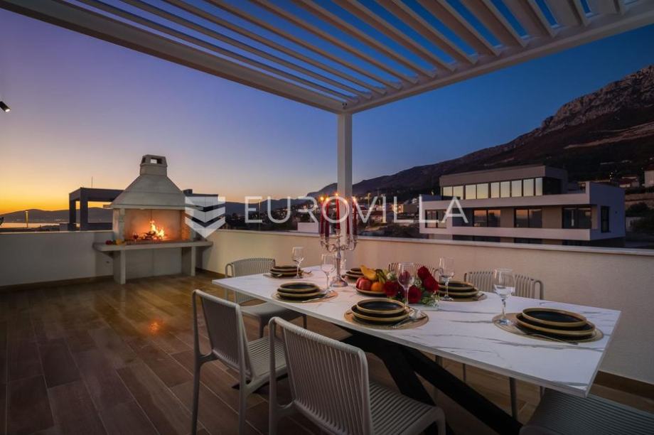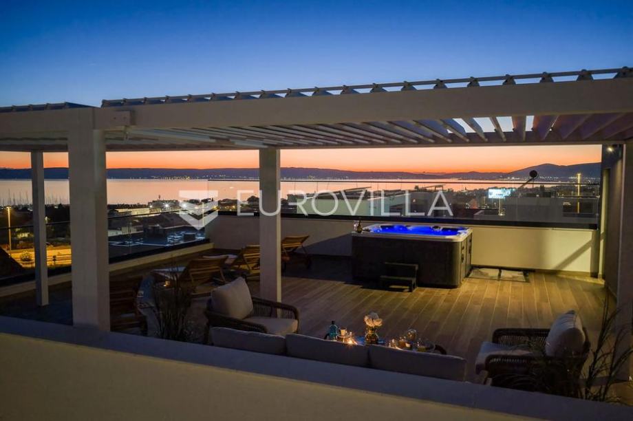 Kaštel Sućurac, luksuzno uređena i odlično opremljena vila s vanjskim bazenom dostupna za dugoročan najam od 1.10.2026.Položena na parceli površine 550 m2, u novoizgrađenom naselju luksuznih vila, na putu od Splita prema zračnoj luci.Razvedena je u tri etaže.Prizemlje je zamišljeno kao open space dnevni prostor s potpuno opremljenom kuhinjom i izlazom na terasu i vrt, a u sjevernom dijelu je jedan zajednički wc, praonica, ostava i sauna. Prva etaža je podijeljena na četiri spavaće sobe s pripadajućim kupaonicama, dok je na drugoj etaži prostrana krovna terasa s jacuzzijem, roštiljem i natkrivenim dijelom dijelom za opuštanje.Svaka prostorija ima podno grijanje i vlastiti klima uređaj.Za sve dodatne informacije, stojimo Vam na raspolaganju....