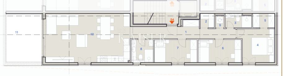 Stan, oznake S4, nalazi se na prvom katu istočne zgrade. Ukupna neto korisna površina stana iznosi 90,83 m². Pažljivo je projektiran kako bi se naglasili otvoreni, svijetli prostori i besprijekorna povezanost s prirodnim okruženjem.